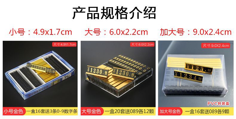 • 작은 크기: 금색(16개 세트에는 숫자 스트립 3개가 포함되어 있음)