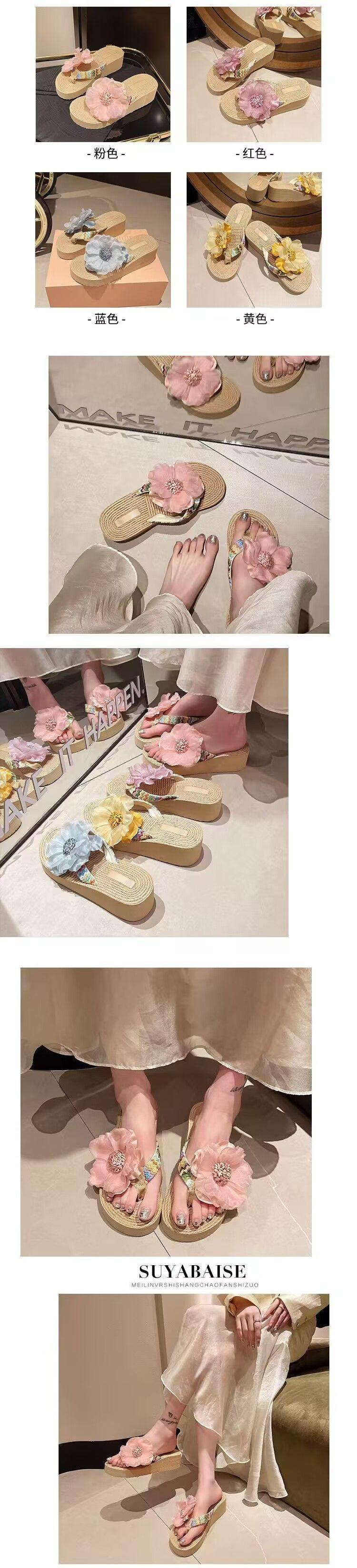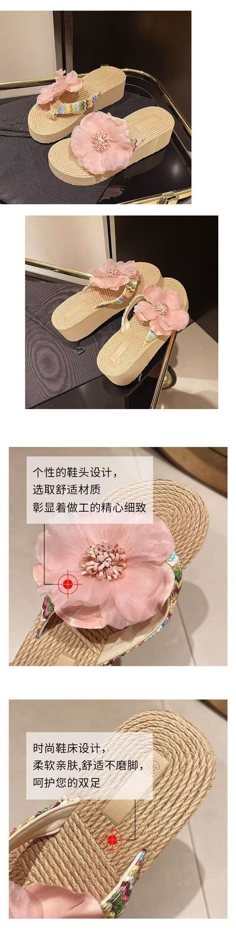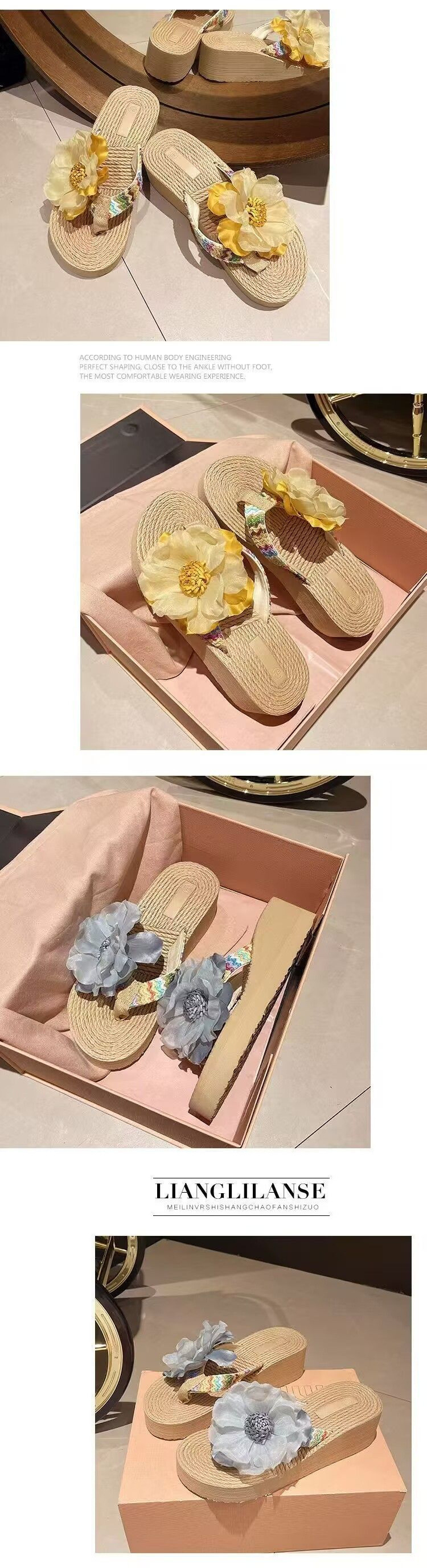 부드러운 미끄럼 새 요정 슬리퍼 웨지 플립 플롭 여름 패션 밀짚 꽃 두꺼운 바닥 목회 휴가스토어 가기