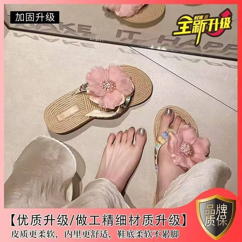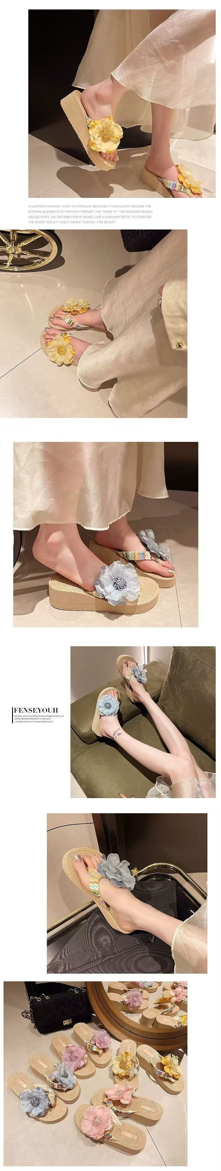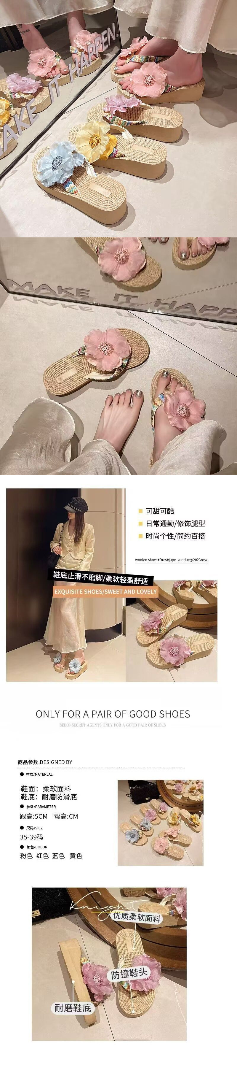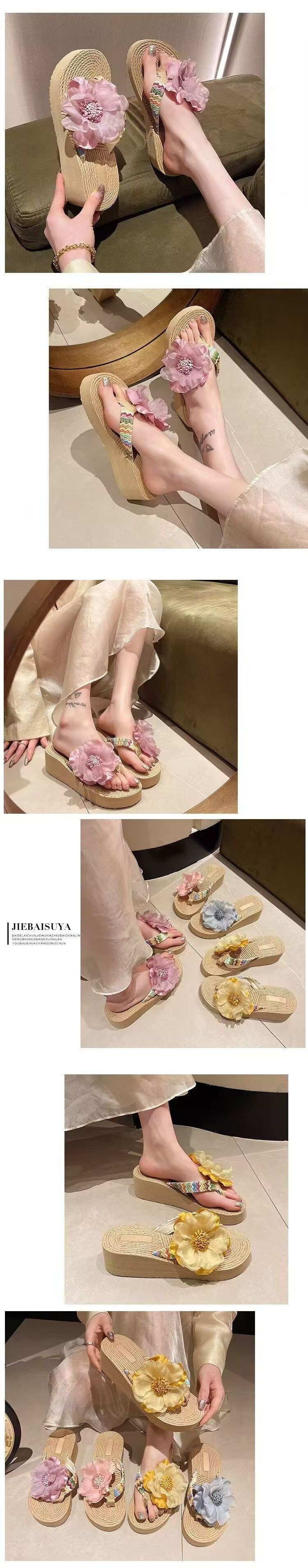 부드러운 미끄럼 새 요정 슬리퍼 웨지 플립 플롭 여름 패션 밀짚 꽃 두꺼운 바닥 목회 휴가스토어 가기
