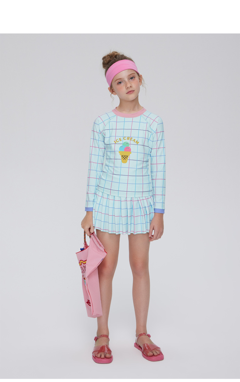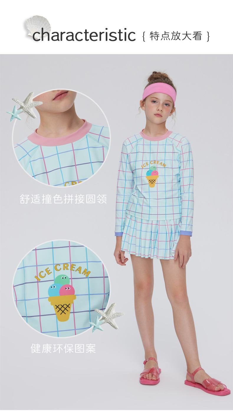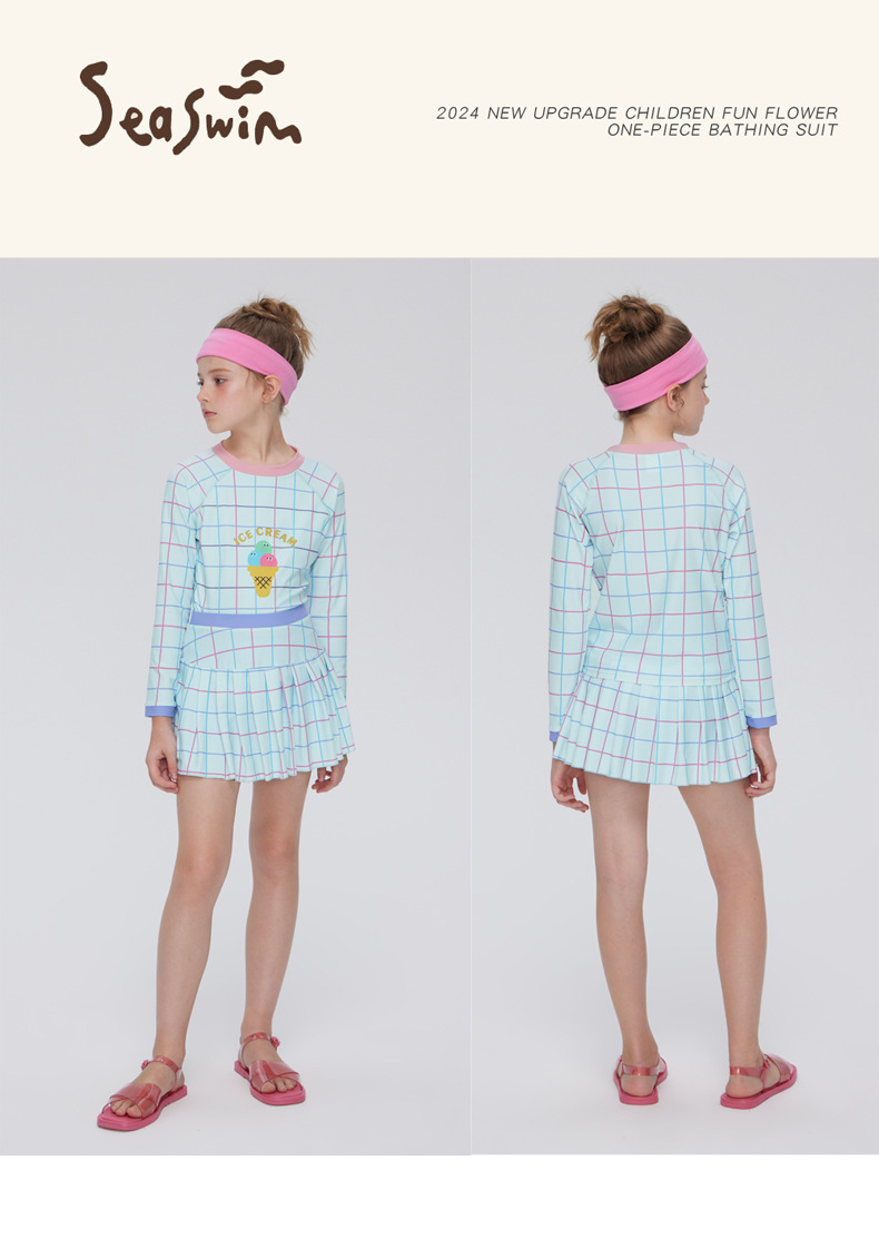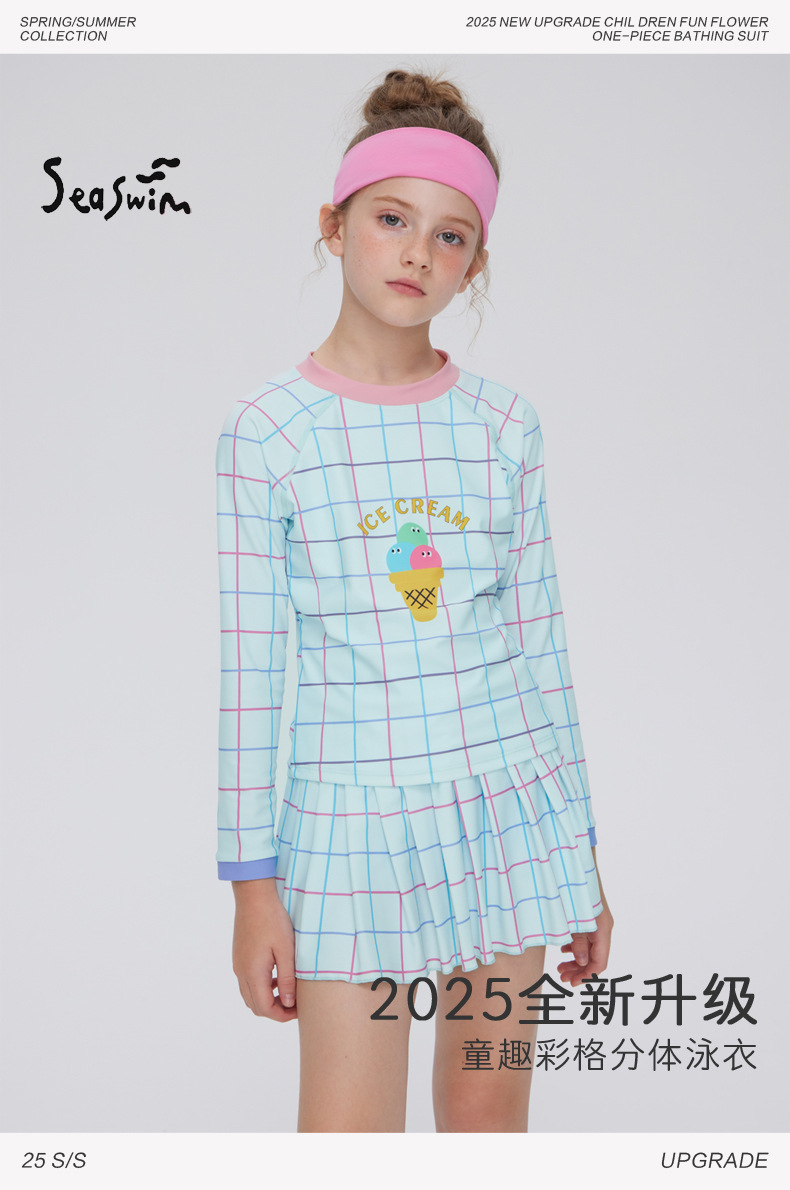 여아 수영복 2025 새로운 스타일 중대형 어린이 자외선 차단 속건 중학생 보수적 스플릿 스커트 어린이 수영복 도매