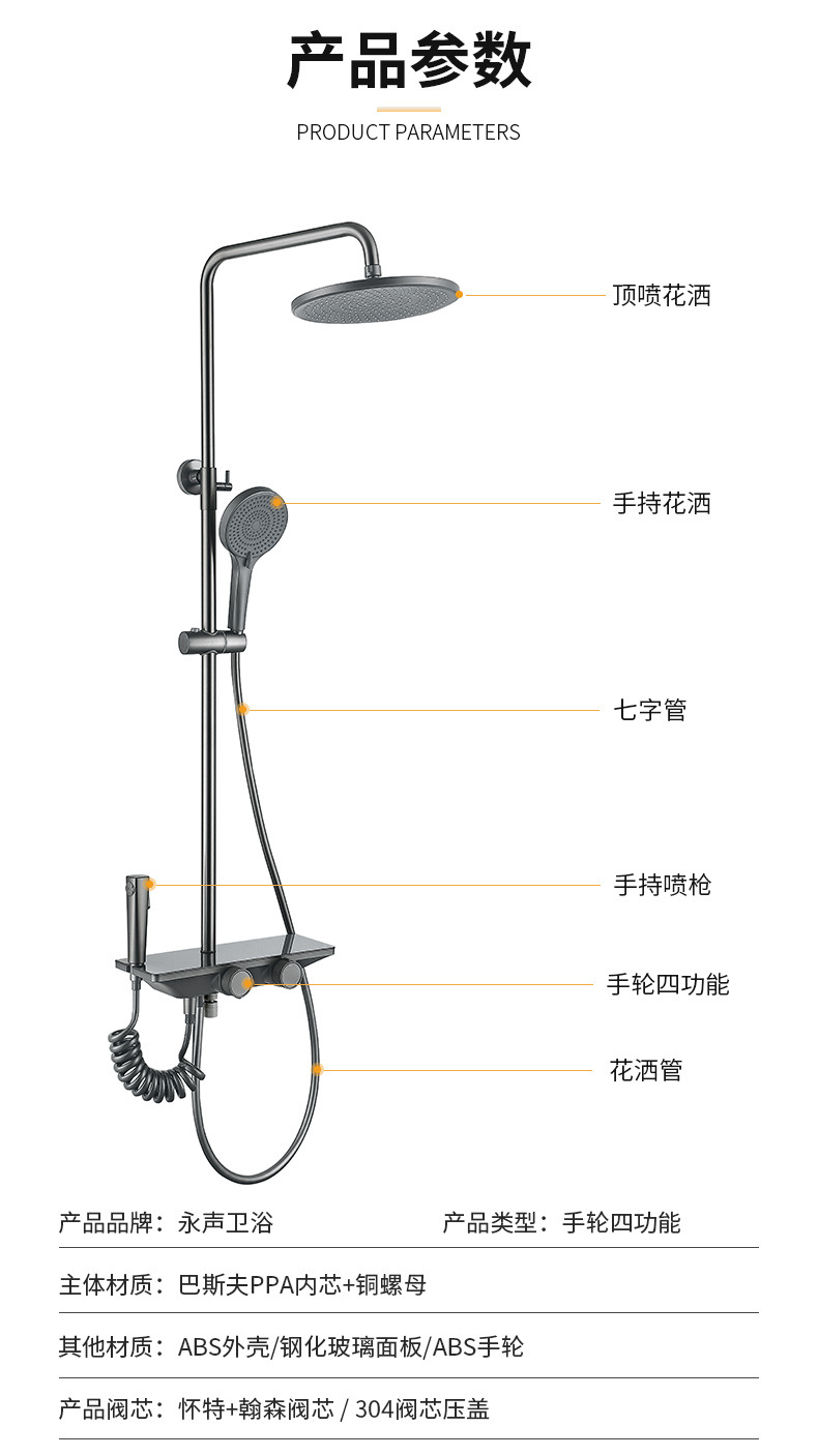 Kaiping 제조업체 OEM 양손 휠 건 그레이 샤워 헤드 세트 욕실 부스터 스프레이 건 샤워 맞춤형 세트스토어 가기