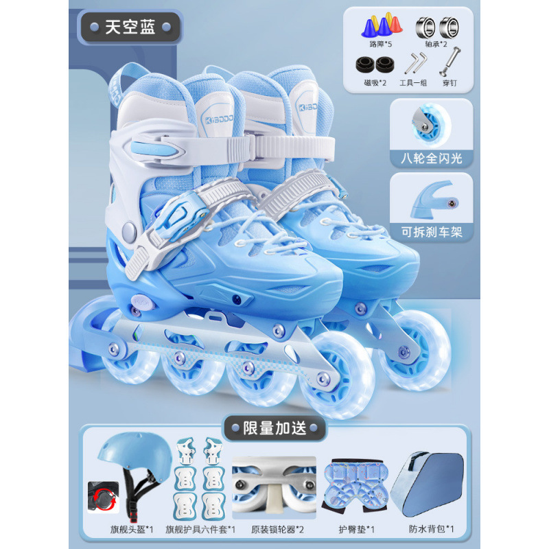 • 스카이 블루 [스탠다드 스타일] 헬멧 보호대 + 엉덩이 패드 + 백팩 + 휠 잠금 장치 + 선물 패키지