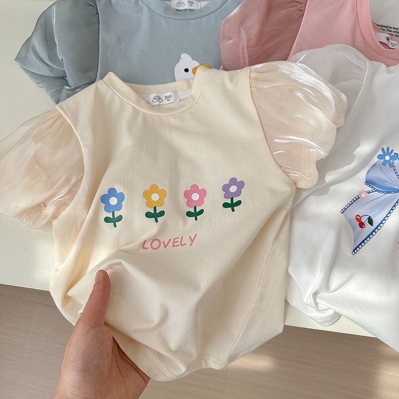 여름 새로운 여성 아기 티셔츠 캐주얼 반팔 통기성 서양 스타일 스위트 탑 어린이 유행 올 매치 웨스턴 스타일스토어 가기