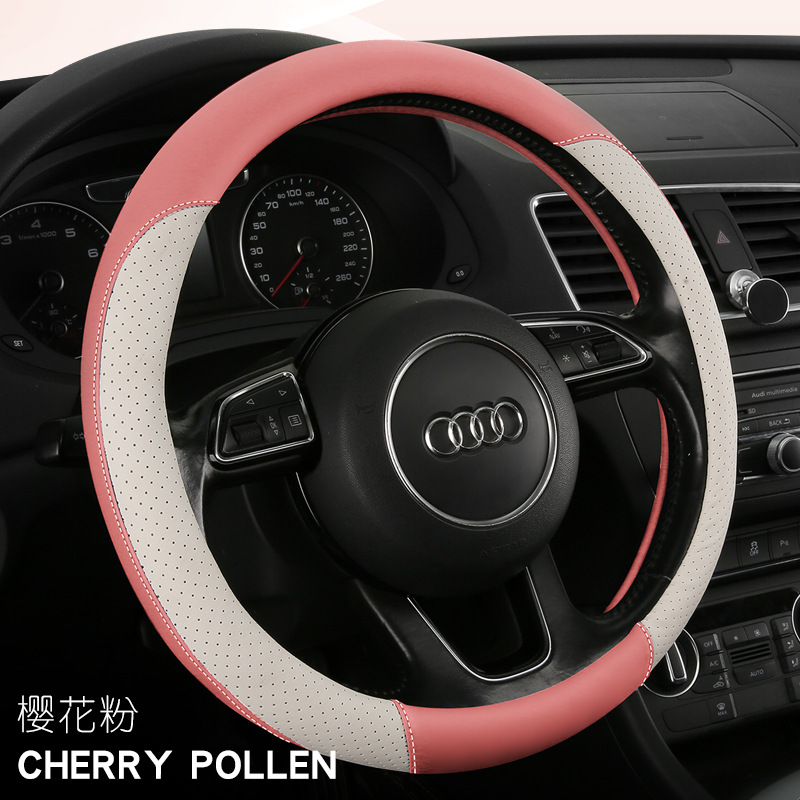 맞춤형 마카롱 자동차 핸들 커버, 편안한 나파 가죽 자동차 핸들 커버, 통기성, 미끄럼 방지, 사계절 사용 가능