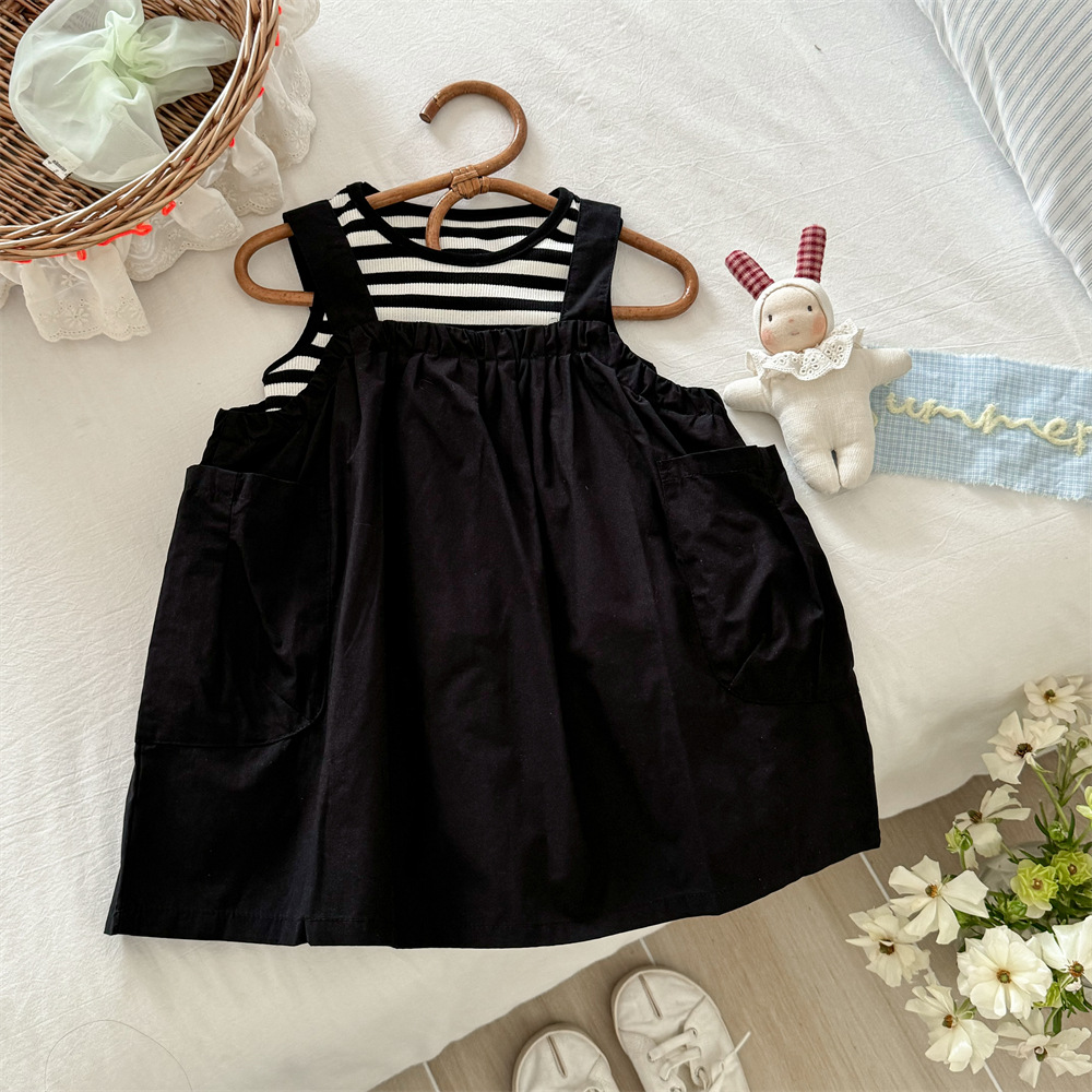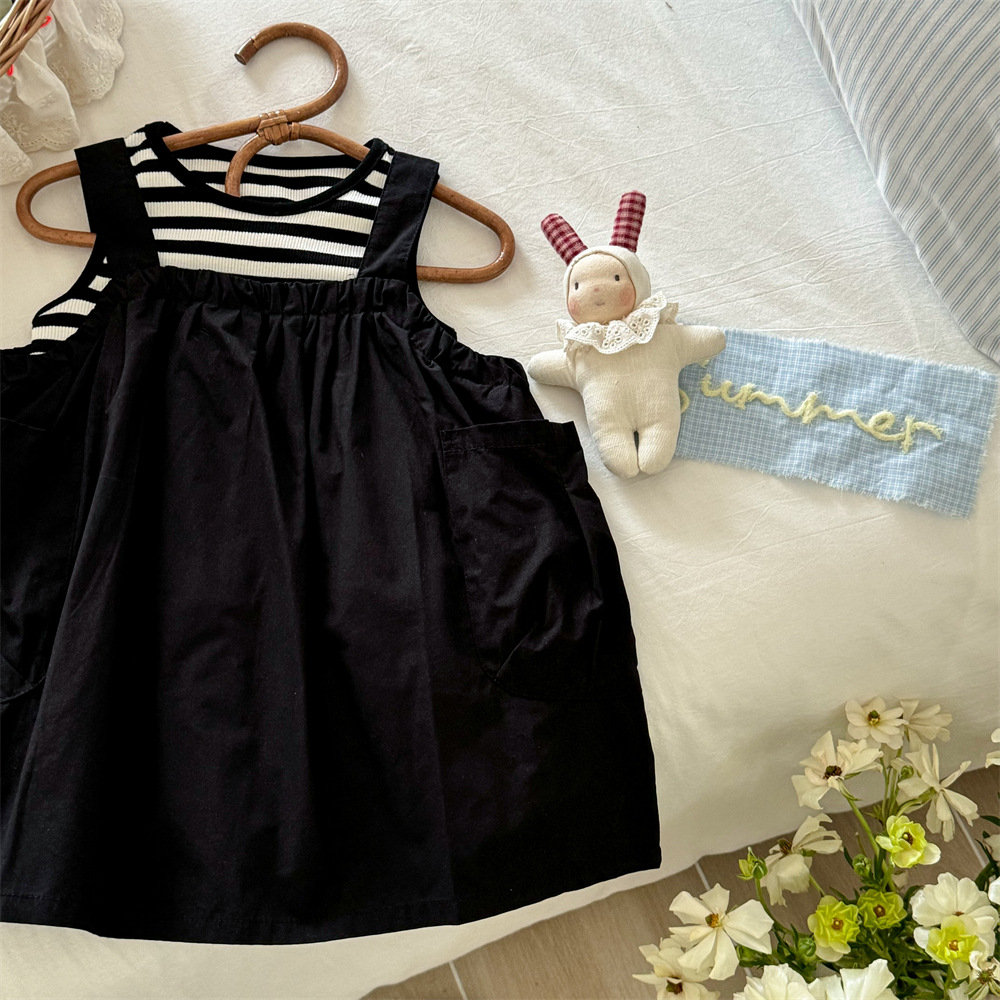 [핑크 하우스] 여아 여름 드레스 새로운 스타일 아동 민소매 조끼 스트라이프 조끼 세련된 아기 소녀스토어 가기