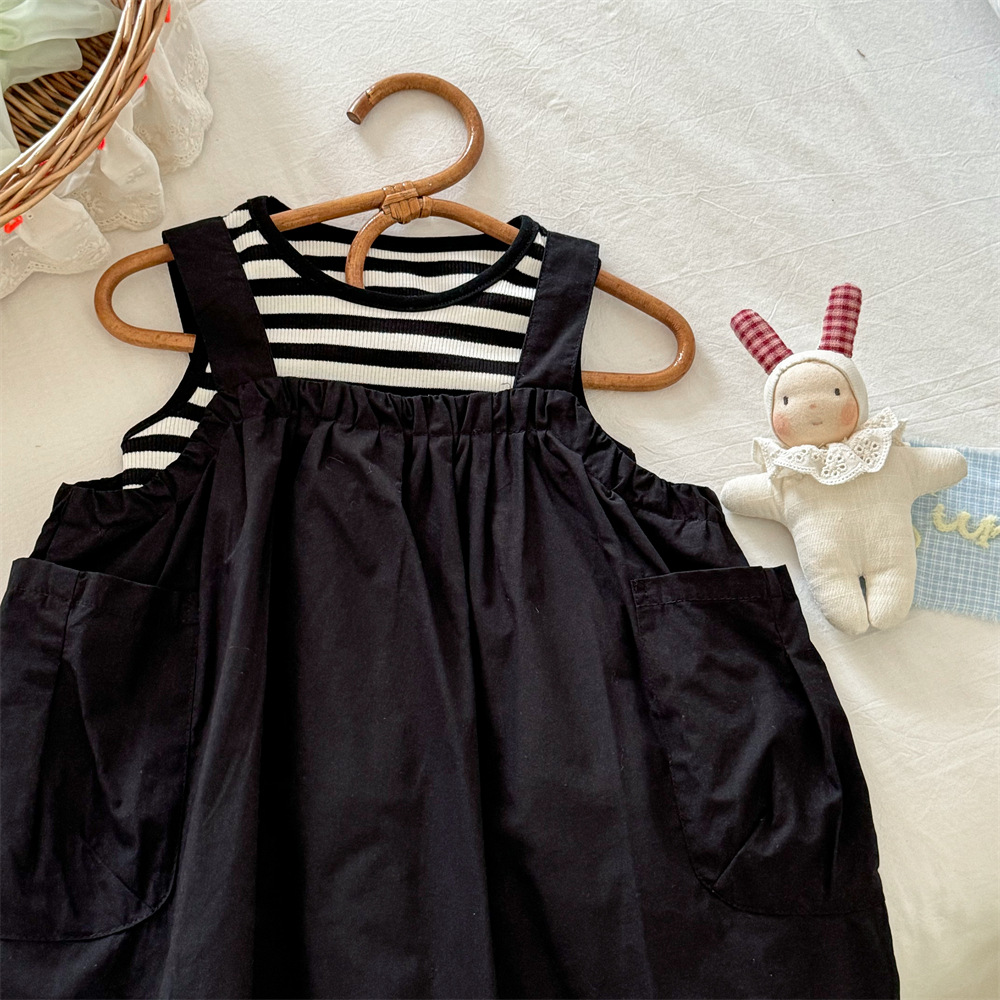 [핑크 하우스] 여아 여름 드레스 새로운 스타일 아동 민소매 조끼 스트라이프 조끼 세련된 아기 소녀