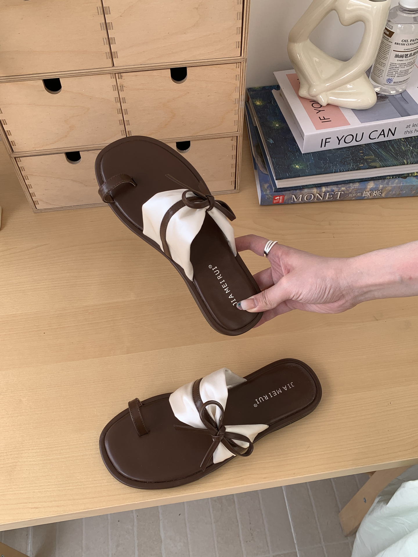 여성용 여름 아우터용 두꺼운 밑창 슬리퍼 2025 신상 프렌치 요정 스커트 플랫 힐 비치 샌들