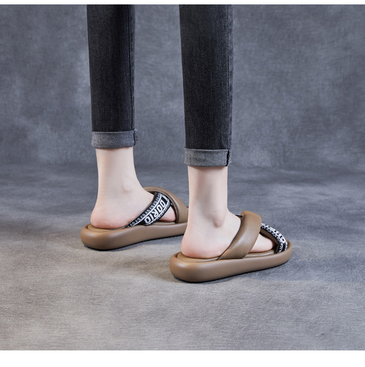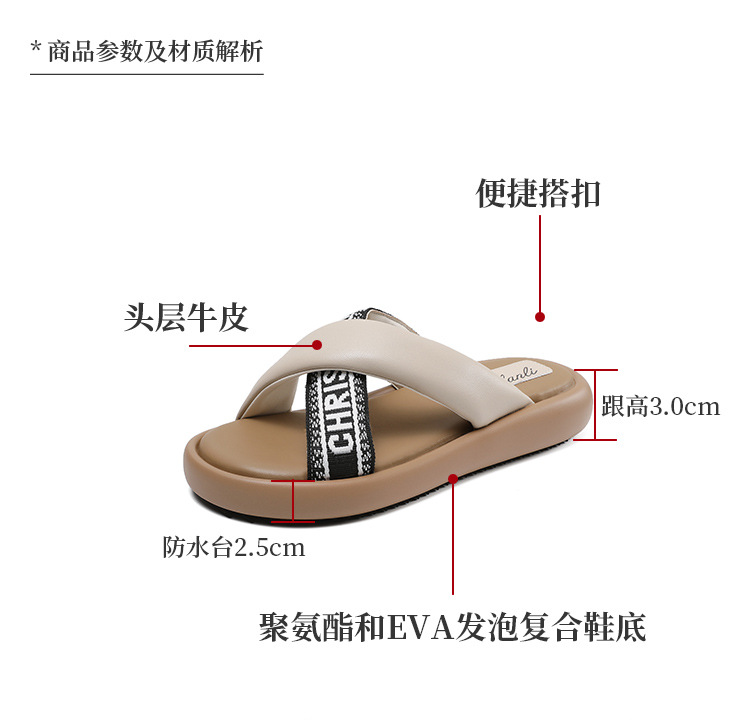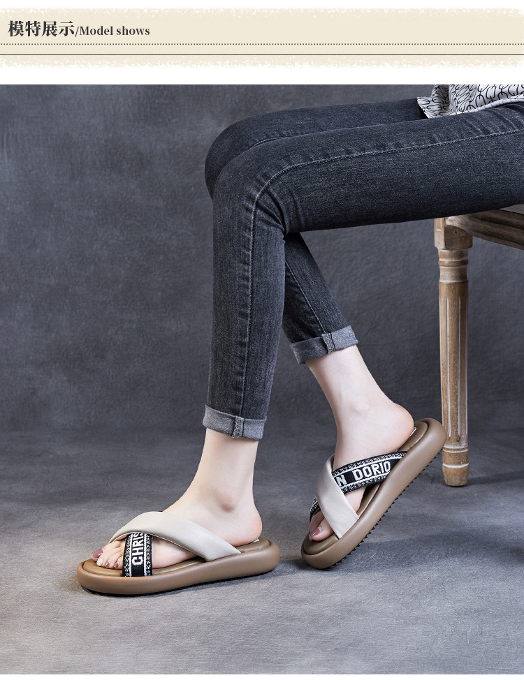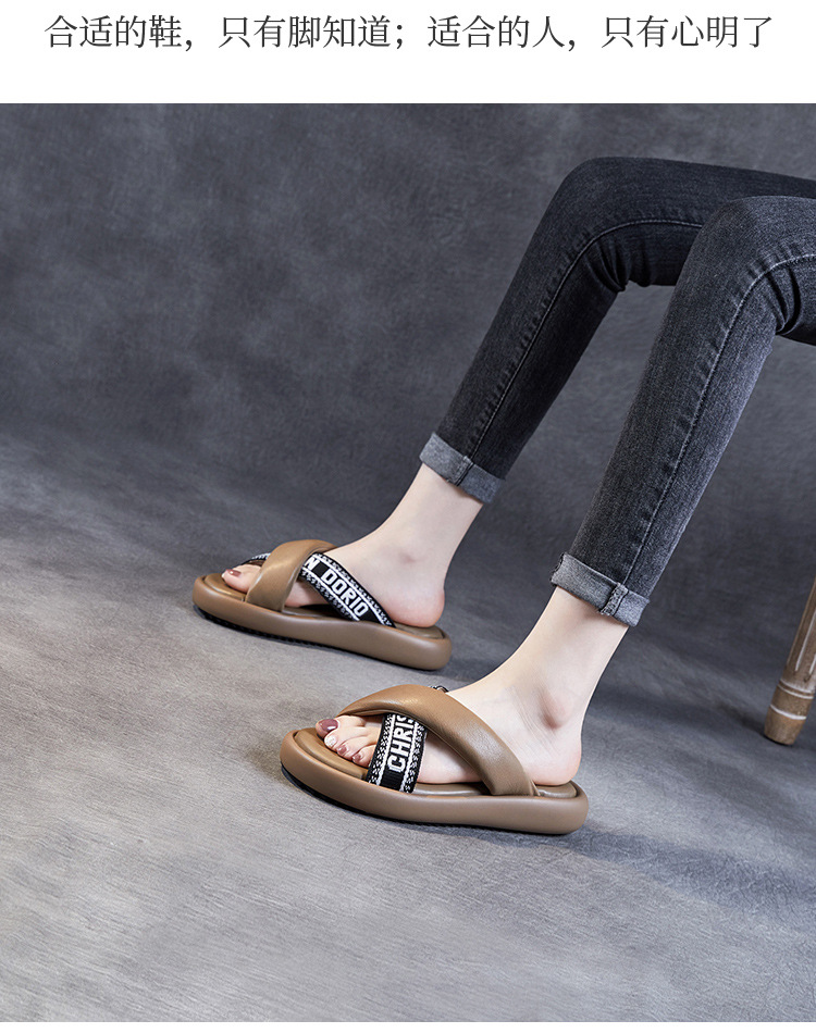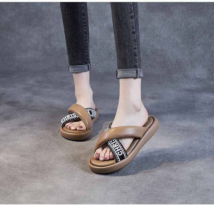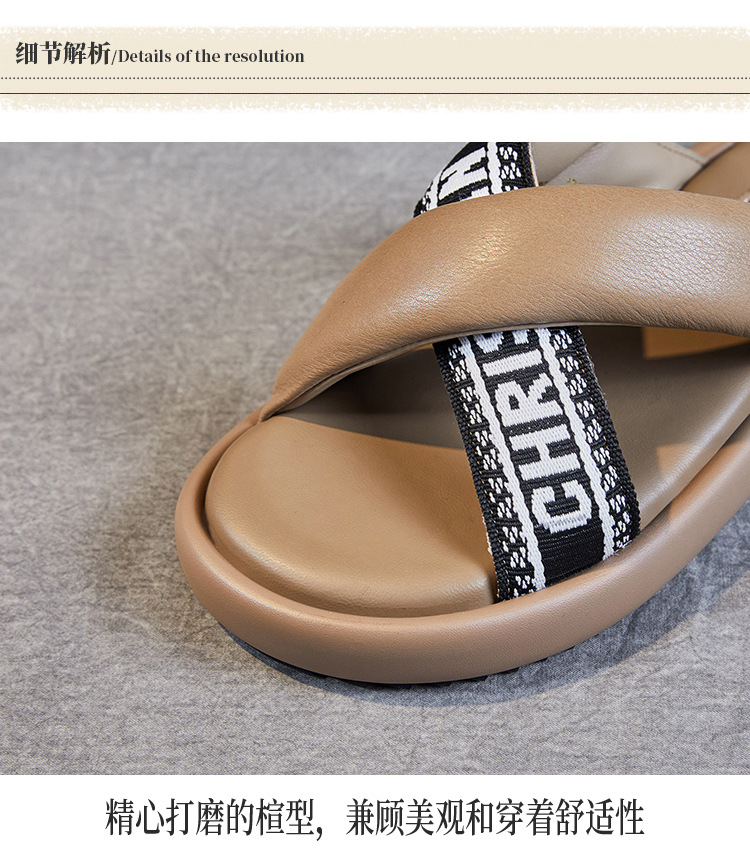 정품 가죽 여성 신발 2025 여름 새로운 패션 다목적 비치 신발 크로스 스트랩 플랫 바닥 편안한 캐주얼 슬리퍼