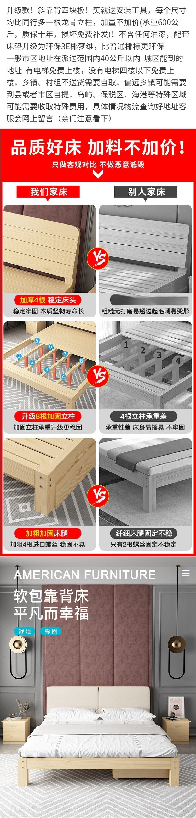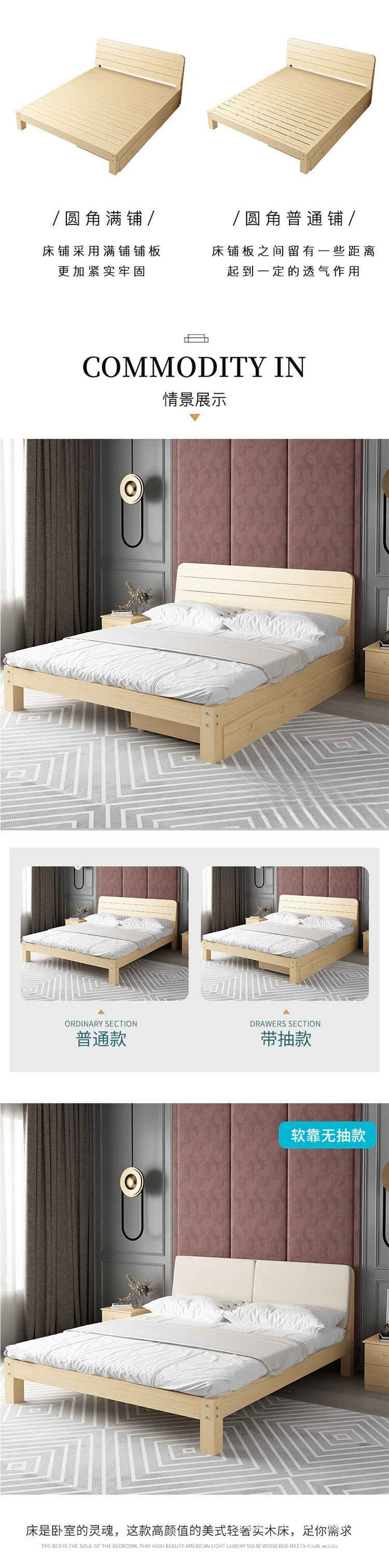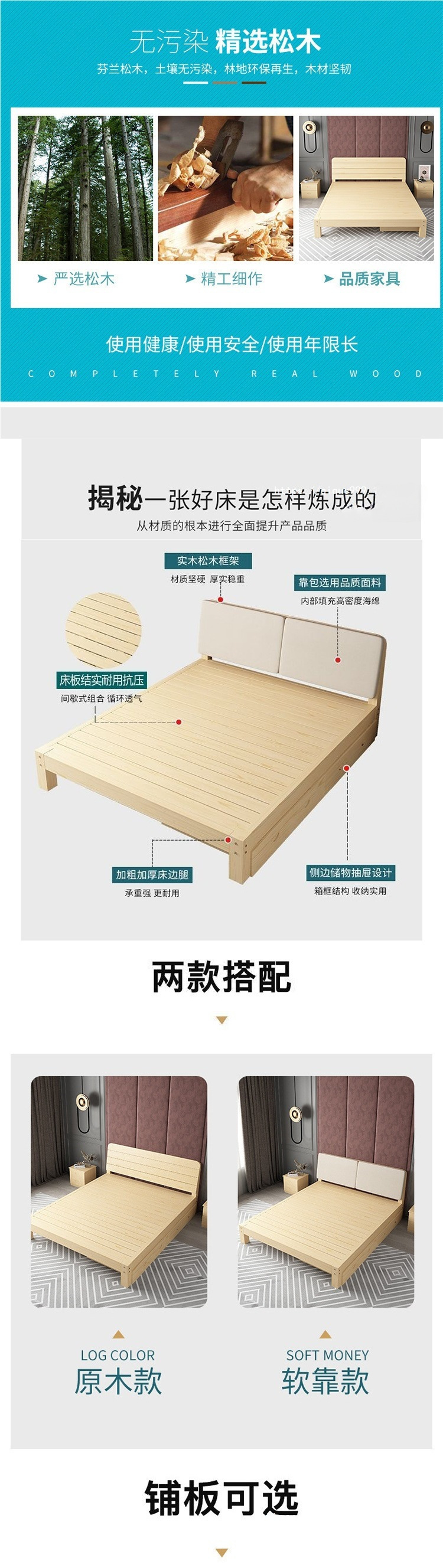 • 원목 침대 높이 30cm + 서랍 + 매트리스 + 푹신한 등받이