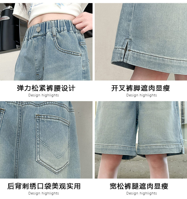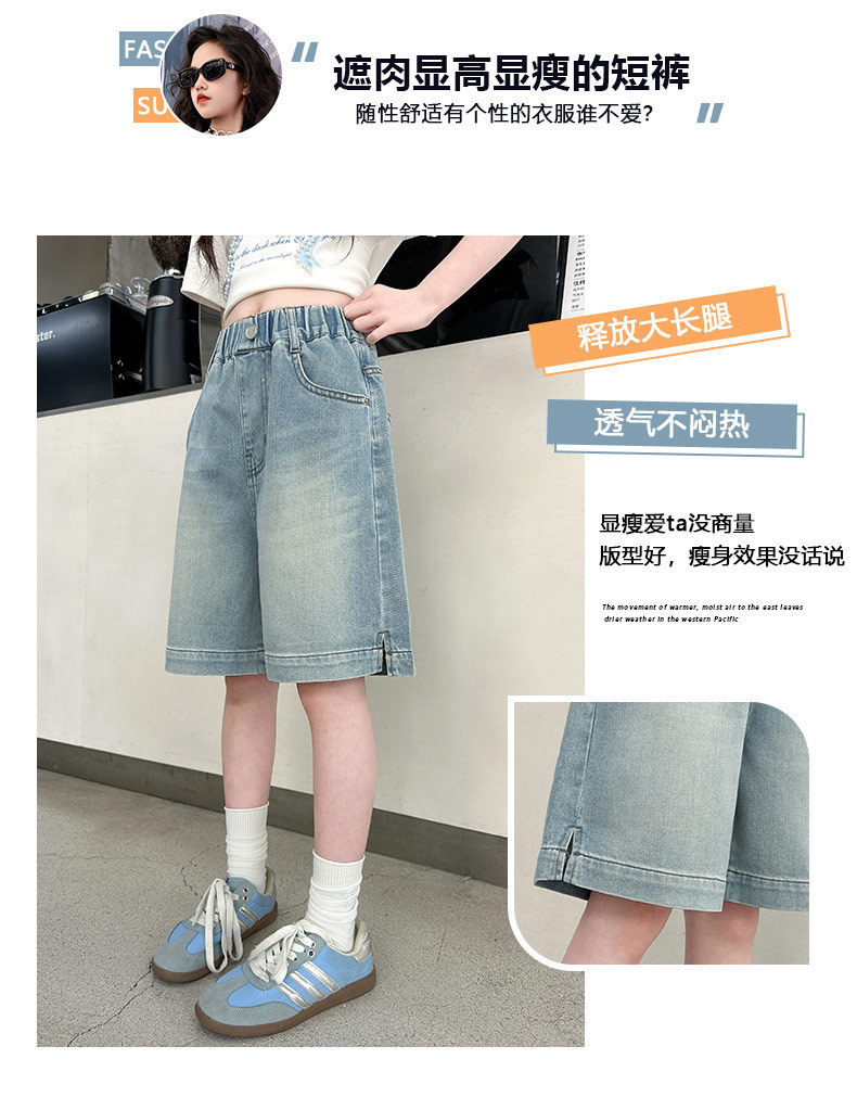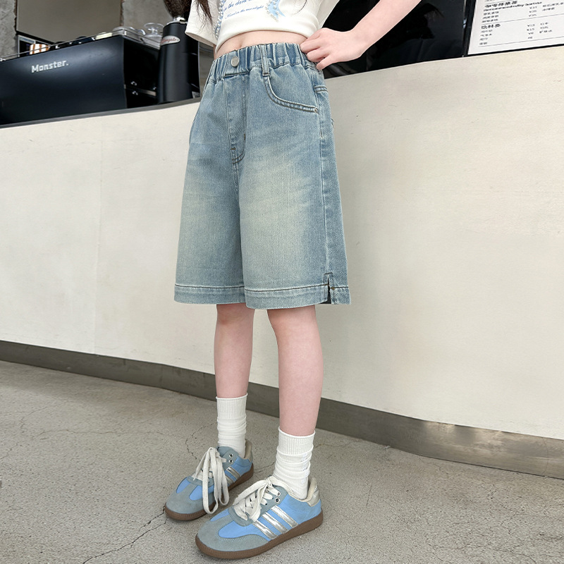 여름 중다 소녀 데님 반바지 아동복 새 소녀의 밝은 색상 간단한 데님 반바지 미드 바지 올매치