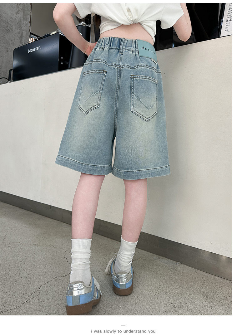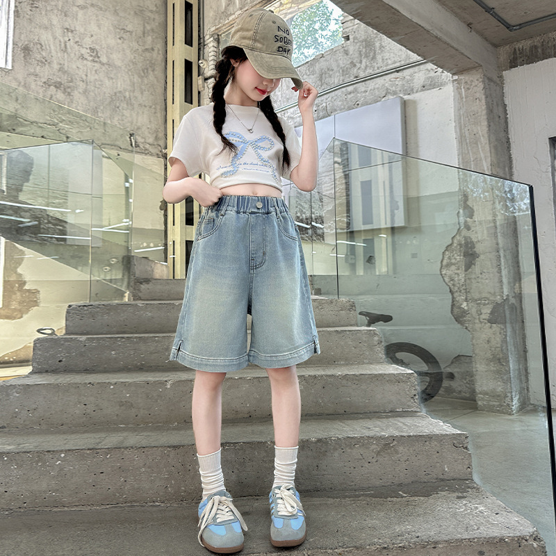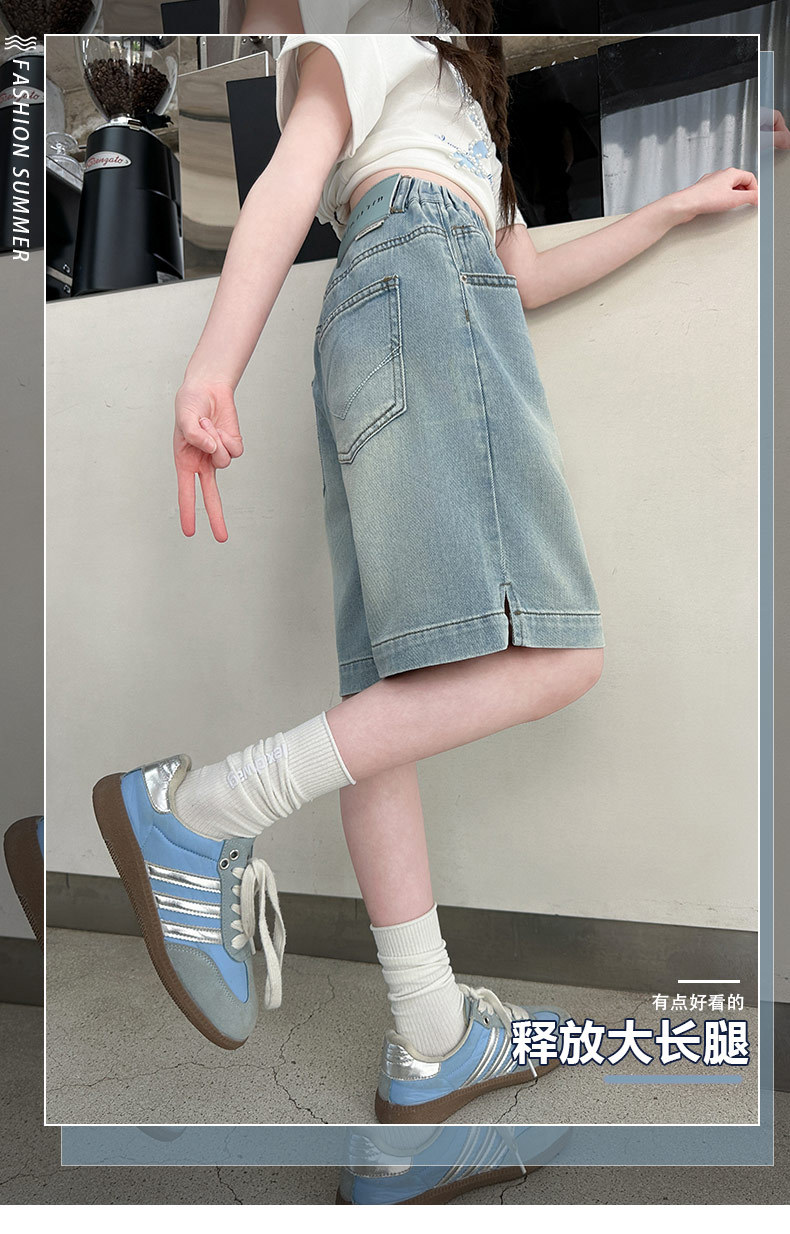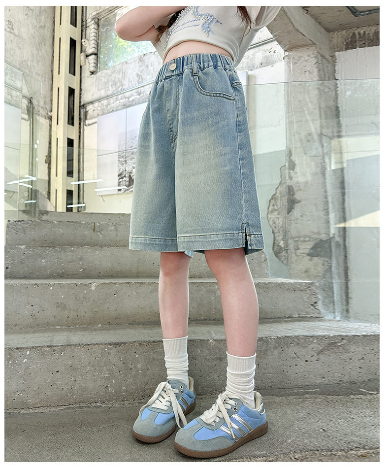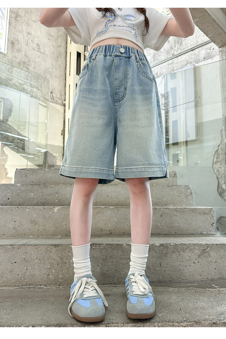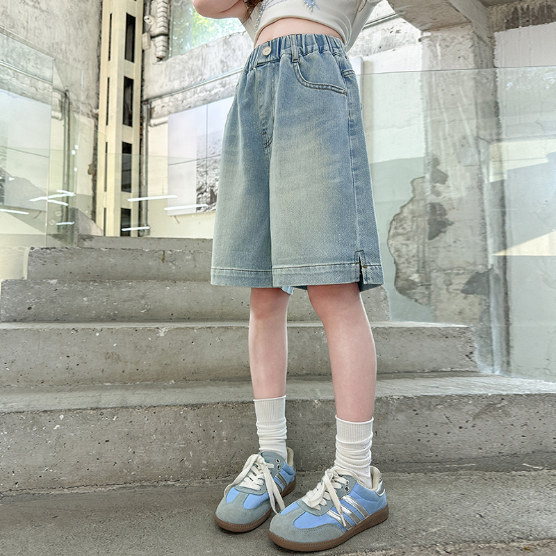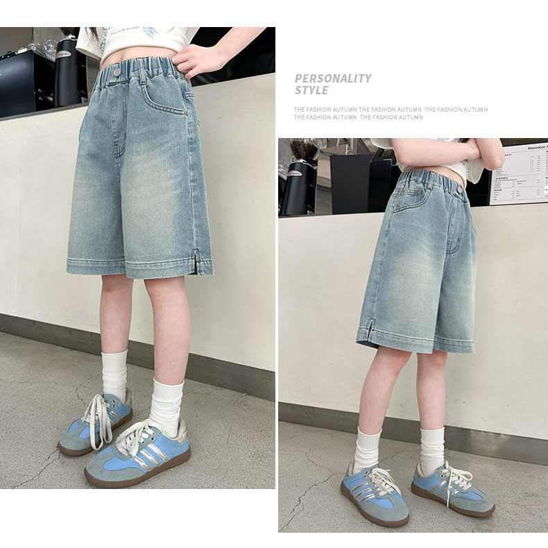 여름 중다 소녀 데님 반바지 아동복 새 소녀의 밝은 색상 간단한 데님 반바지 미드 바지 올매치스토어 가기