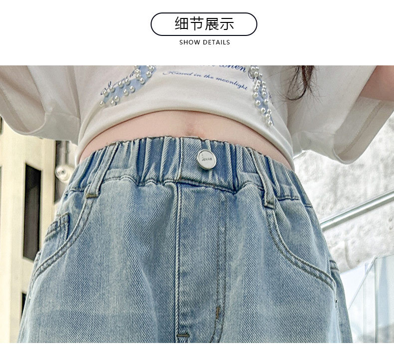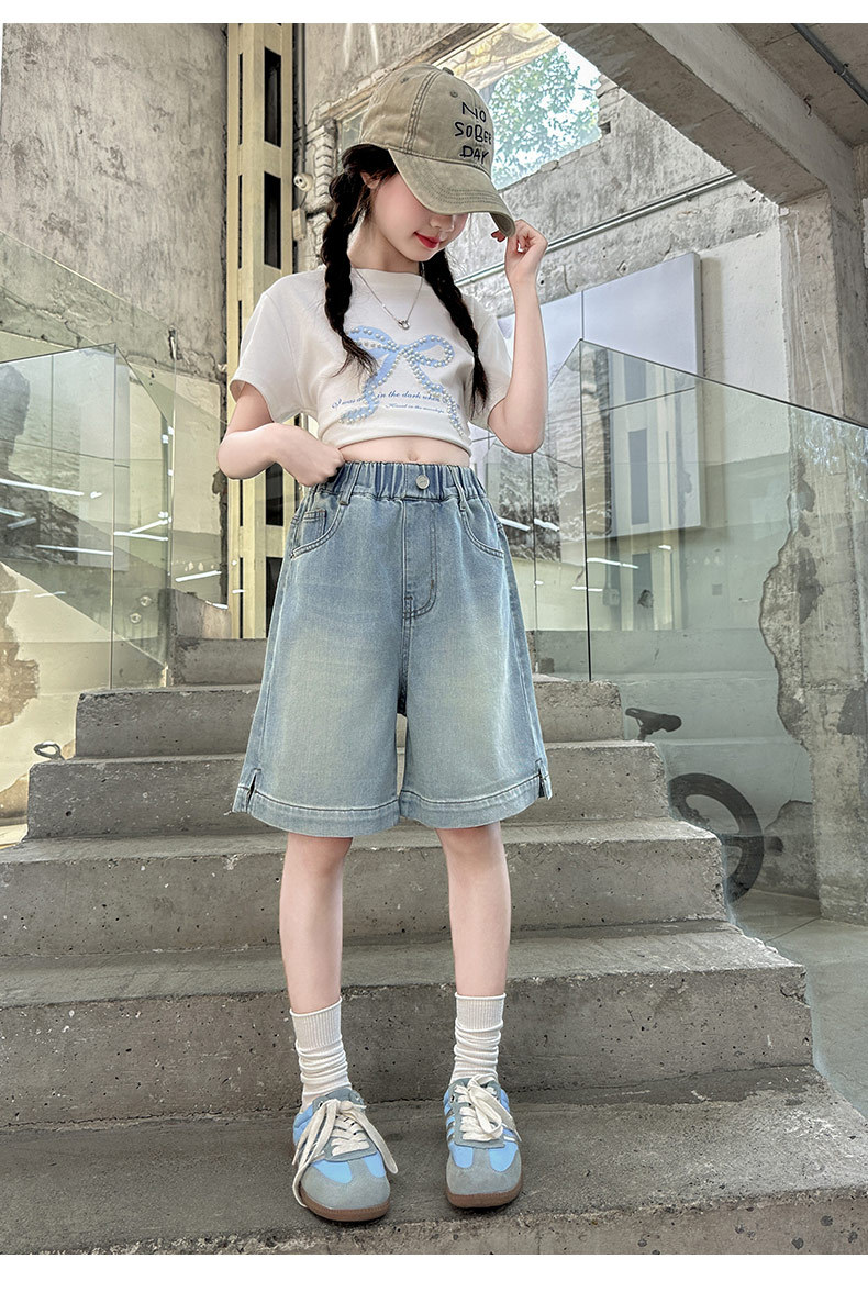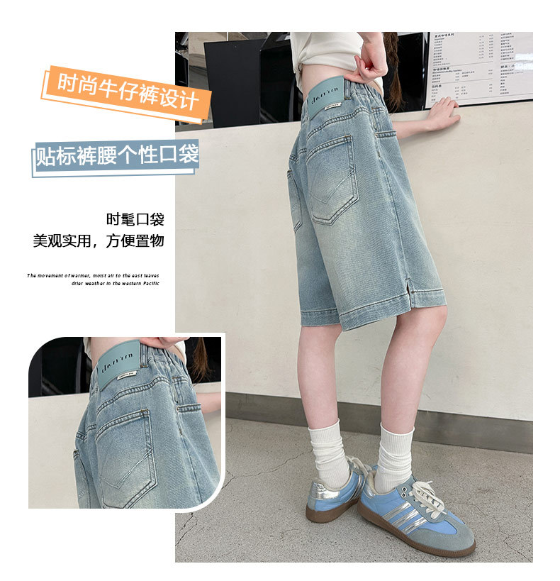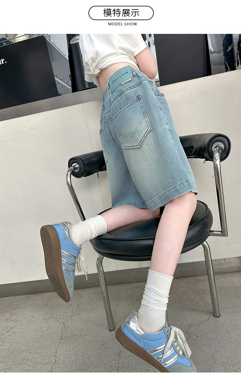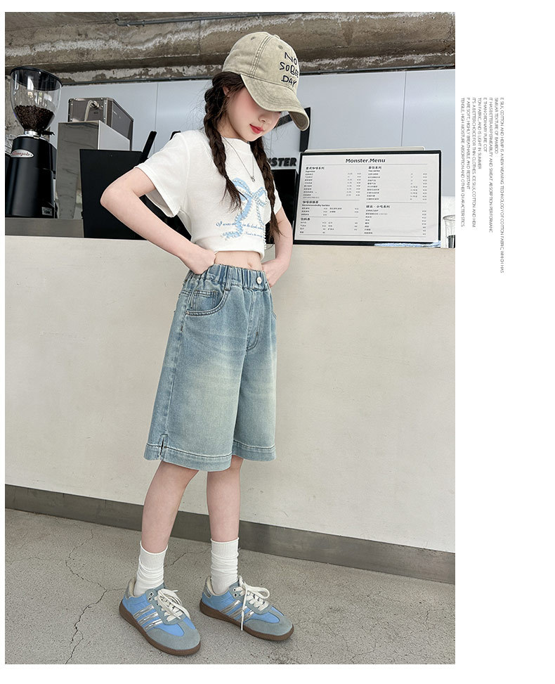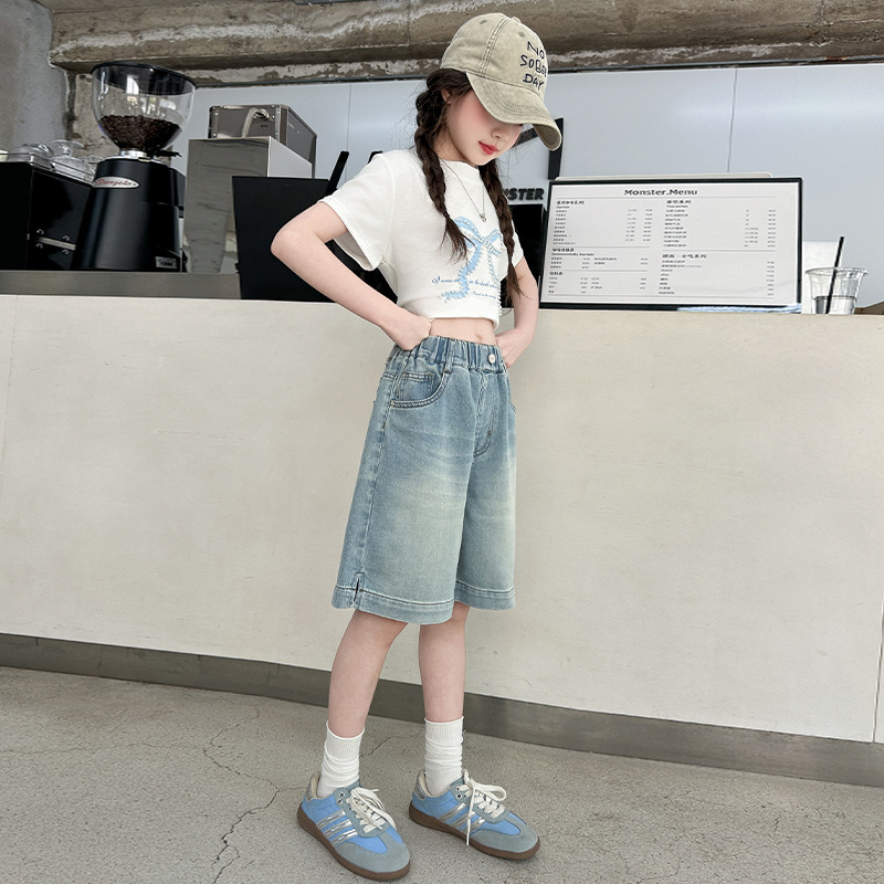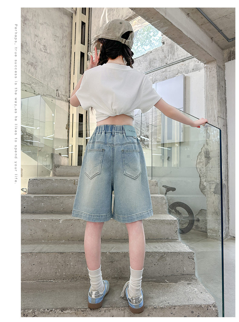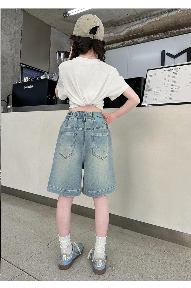 여름 중다 소녀 데님 반바지 아동복 새 소녀의 밝은 색상 간단한 데님 반바지 미드 바지 올매치스토어 가기