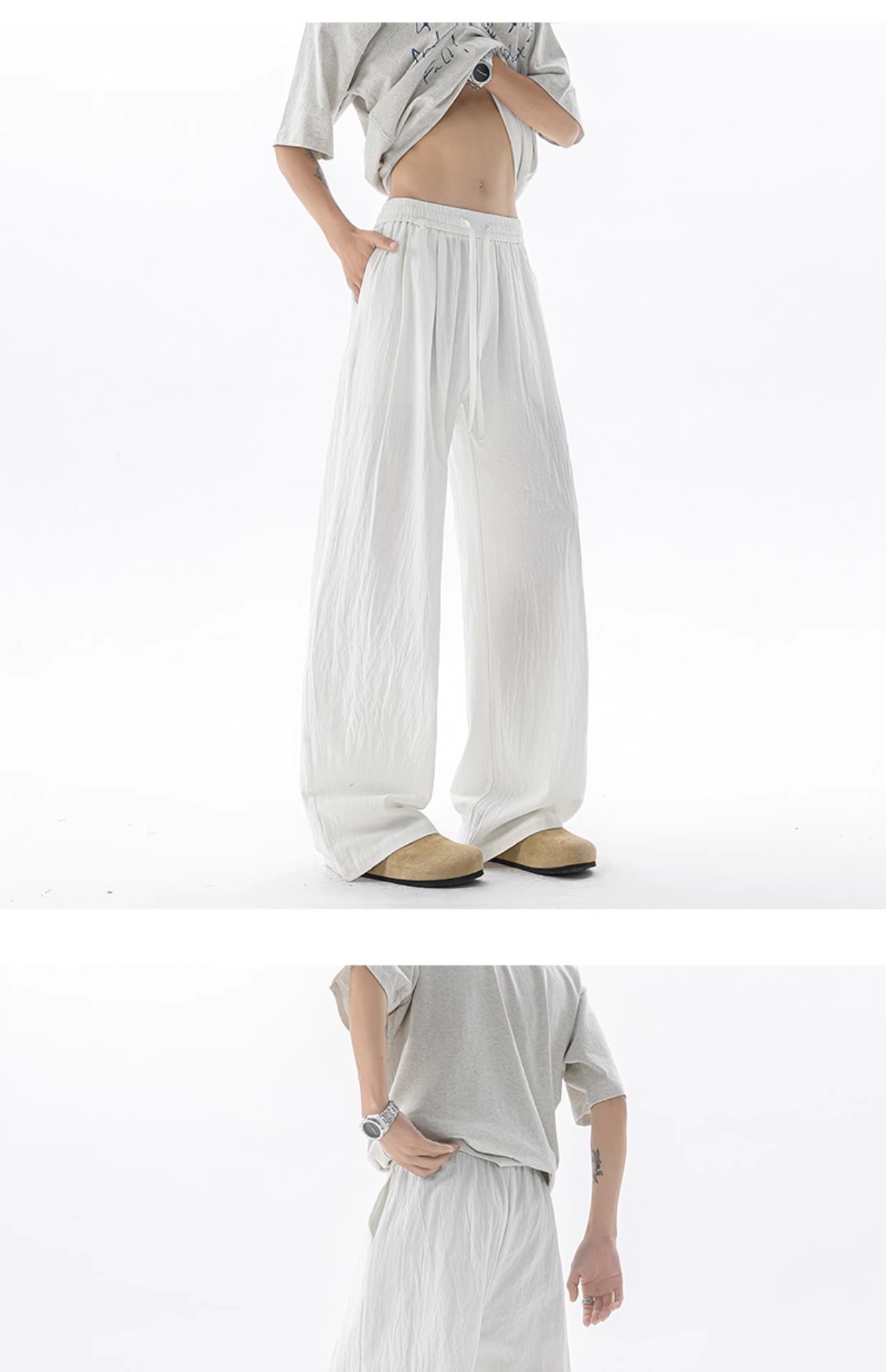 NASA 아이스 실크 코튼 리넨 바지 남자 여름 얇은 2025 새로운 직선 통기성 빠른 건조 리넨 캐주얼 바지스토어 가기