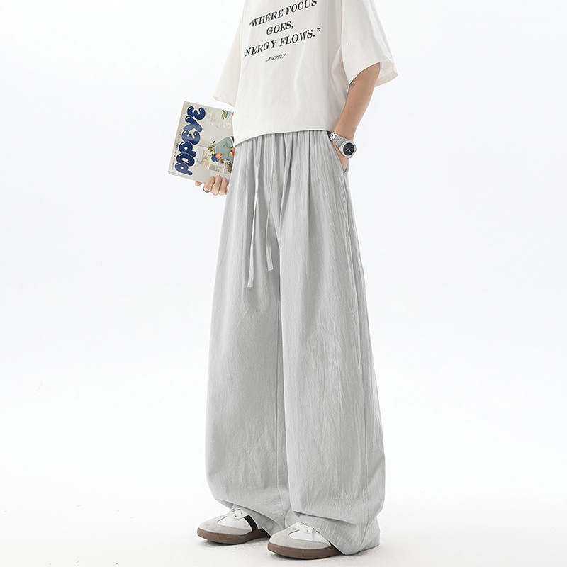NASA 아이스 실크 코튼 리넨 바지 남자 여름 얇은 2025 새로운 직선 통기성 빠른 건조 리넨 캐주얼 바지