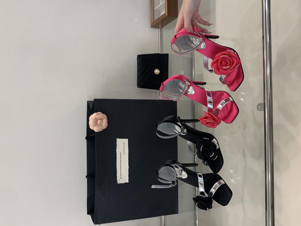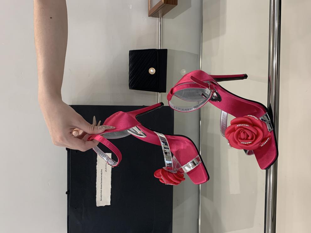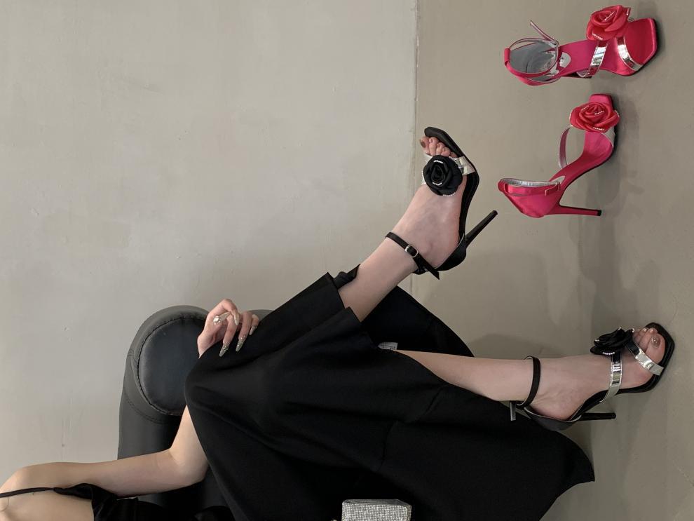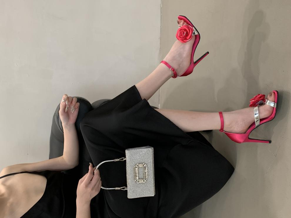 2025 유럽과 미국의 i 장미 장식 스타일 스틸레토 샌들 로마 라인 석 하이힐 여성 신발 사이즈 40스토어 가기