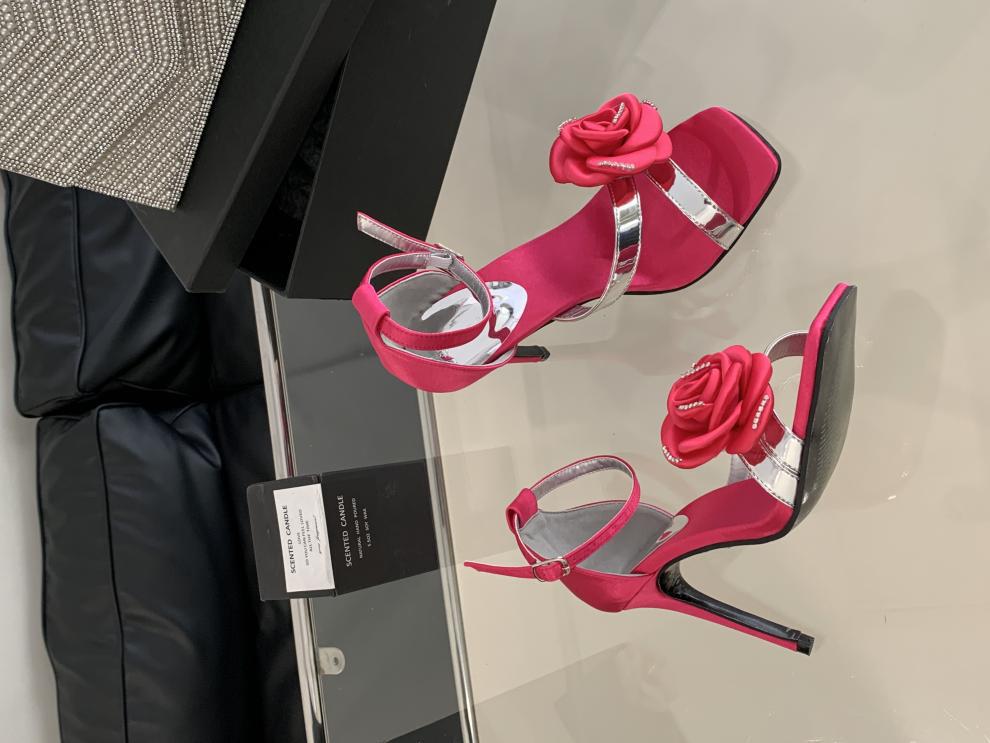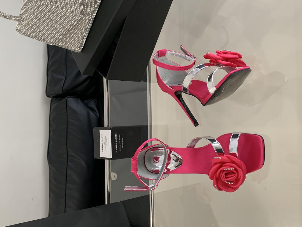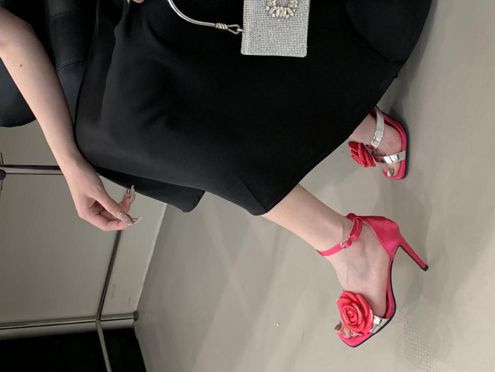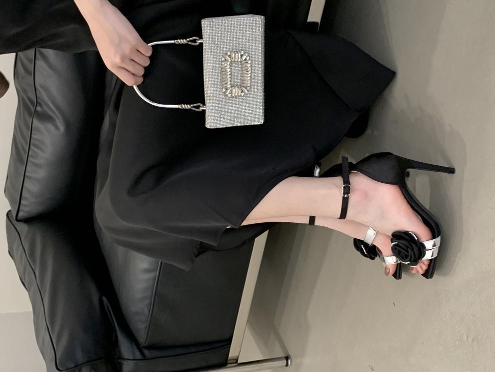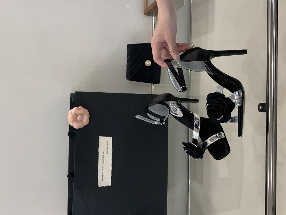 2025 유럽과 미국의 i 장미 장식 스타일 스틸레토 샌들 로마 라인 석 하이힐 여성 신발 사이즈 40스토어 가기