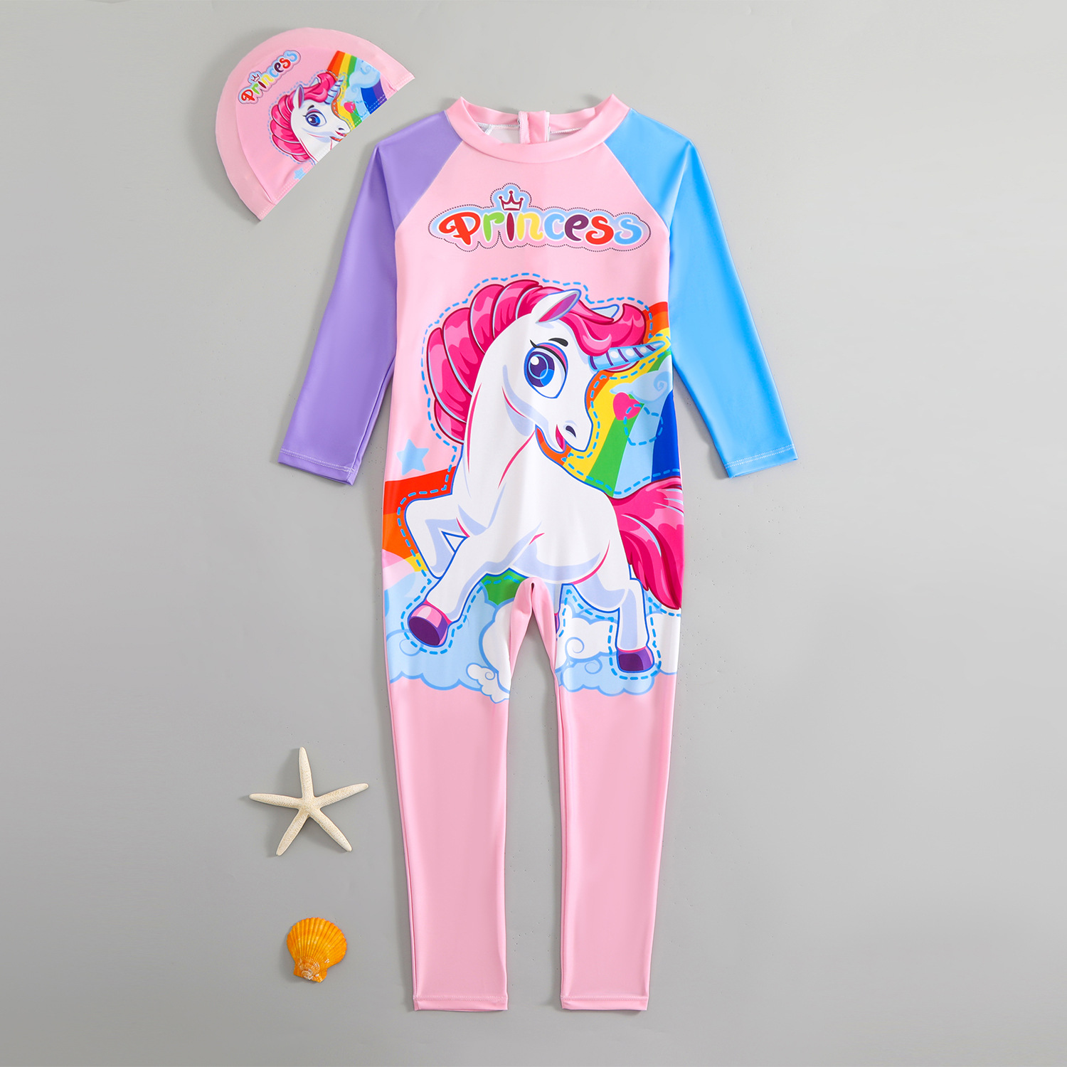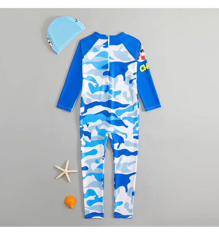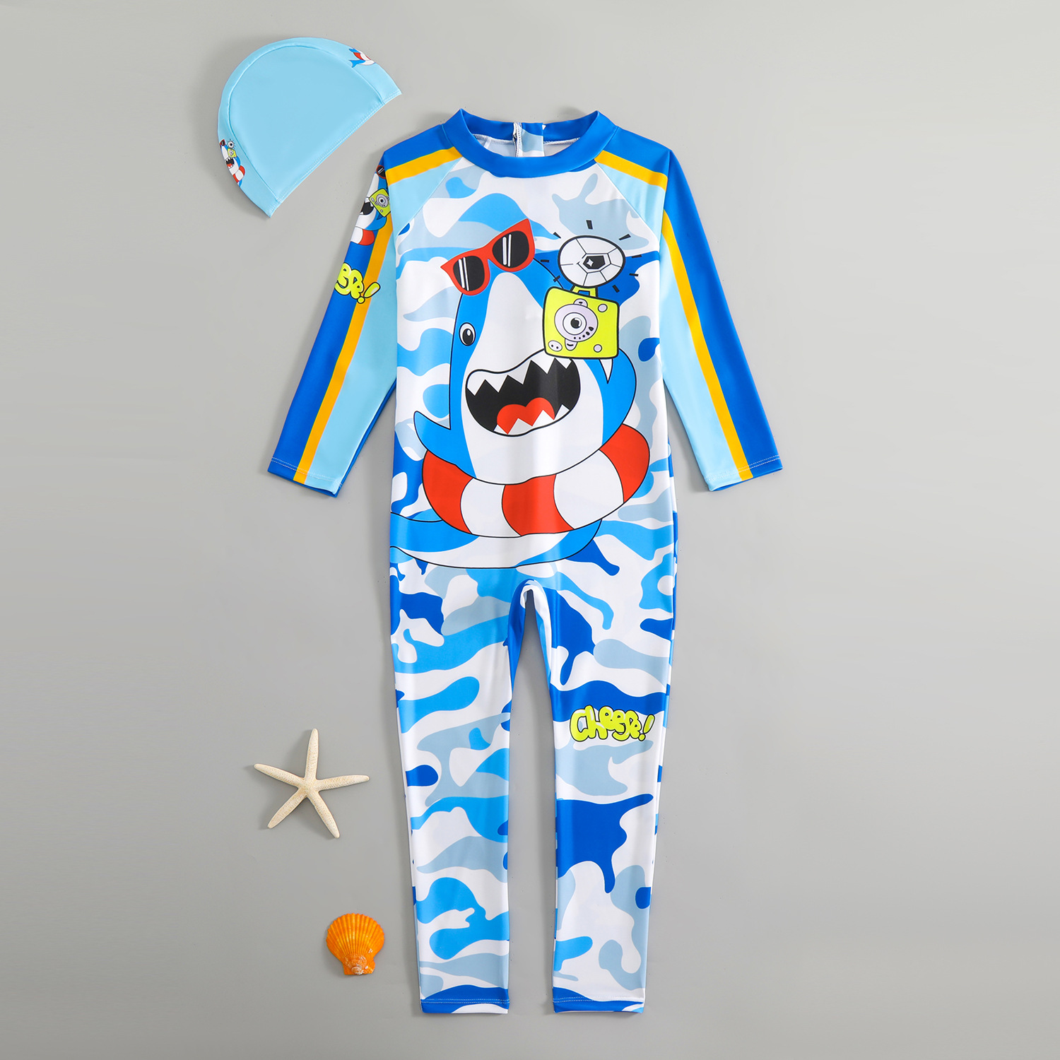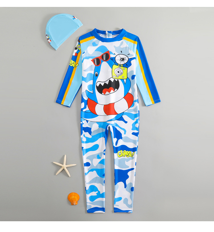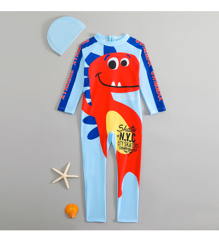 한국의 새로운 어린이 수영복 소년 정장 공룡 아기 수영복 소년 수영 모자 대외 무역 수영복 2025