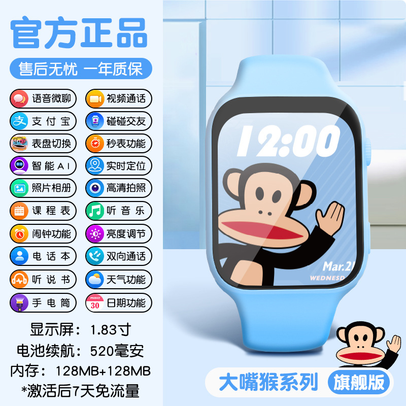 큰 입 원숭이 어린이 WeChat 전화 시계 지능형 포지셔닝 고화질 비디오 GPS 다기능 Wi-Fi 카드 통화스토어 가기
