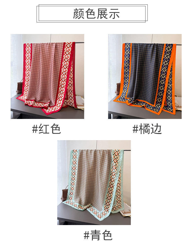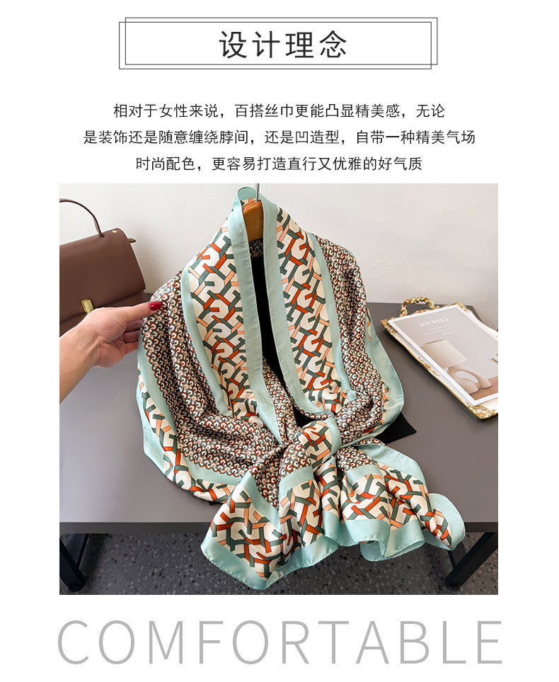 대비되는 색상의 기하학적 시뮬레이션 실크 브로케이드 패션 자외선 차단제 복고풍 스타일 실크 스카프 긴 스카프 숄 다용도 터번 스카프스토어 가기