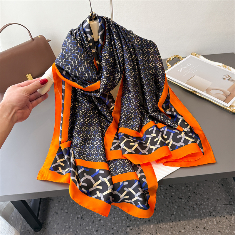 대비되는 색상의 기하학적 시뮬레이션 실크 브로케이드 패션 자외선 차단제 복고풍 스타일 실크 스카프 긴 스카프 숄 다용도 터번 스카프