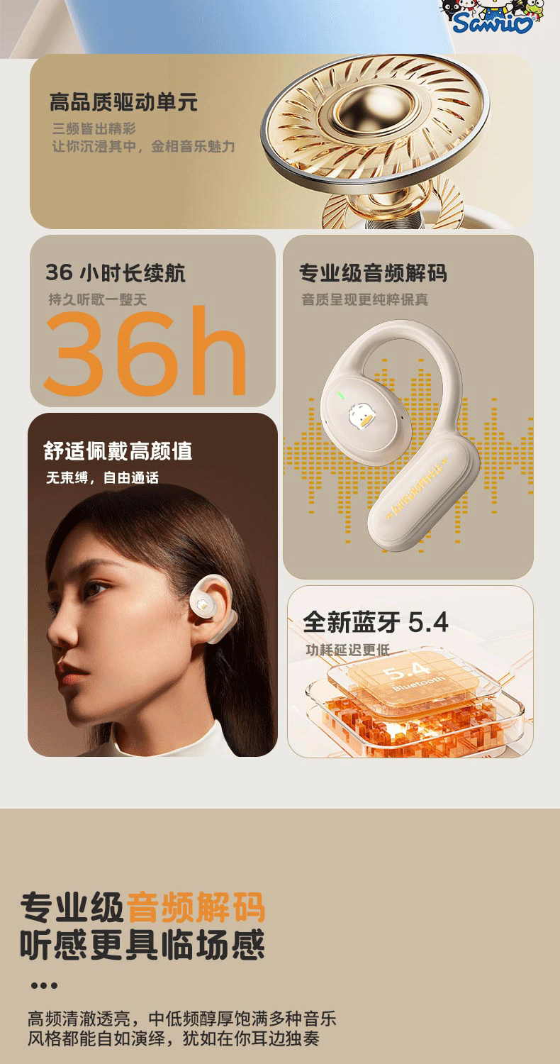 산리오/산리오 블루투스 헤드셋 귀 매달려 장기 무통 장기 내구성 스포츠 헤드셋
