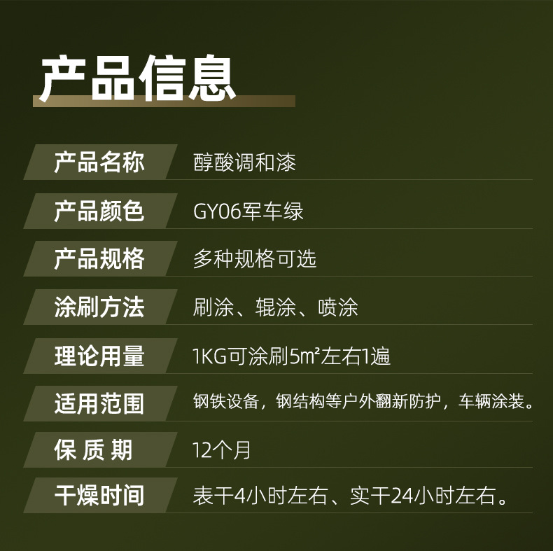 금속 페인트 카키 방수 녹 방지 군사 차량 녹색 알키드 페인트 에나멜 홈 트럭 개조 부식 방지 페인트스토어 가기