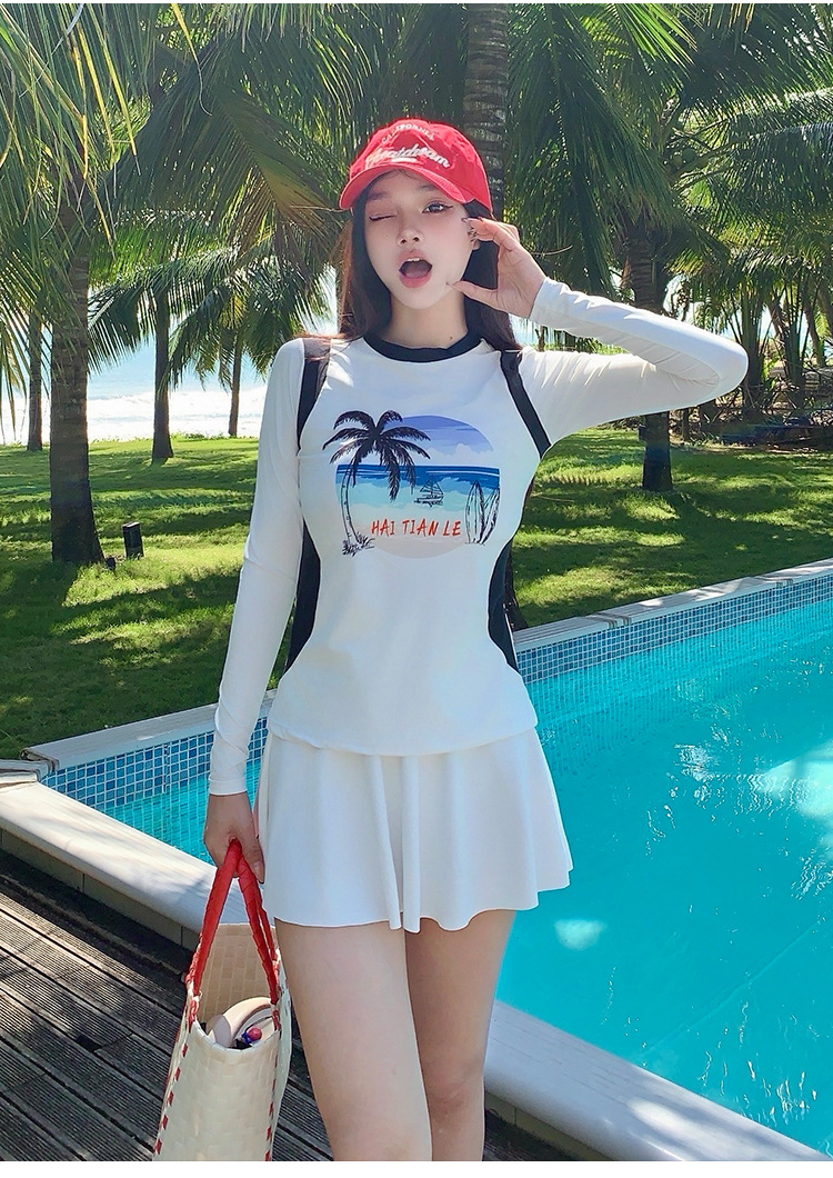 수영복 여성의 새로운 긴팔 바지 2025 여름 보수적 스플릿 자외선 차단제 해파리 슈트 서핑 슈트 온천 슈트스토어 가기