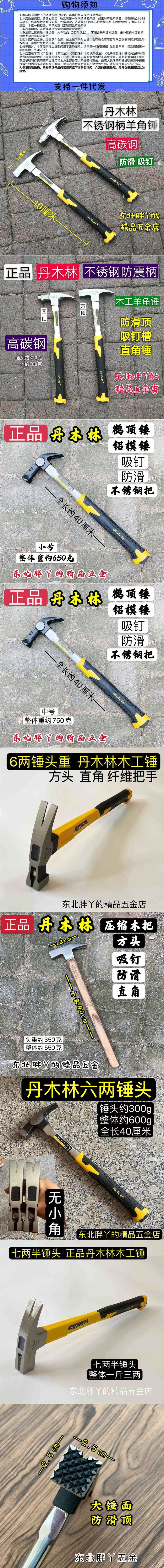Dan Mulin 스테인레스 스틸 클로 해머 높은 탄소 강철 목공 해머 네일 해머 미끄럼 방지 해머 미세 던지기 해머스토어 가기