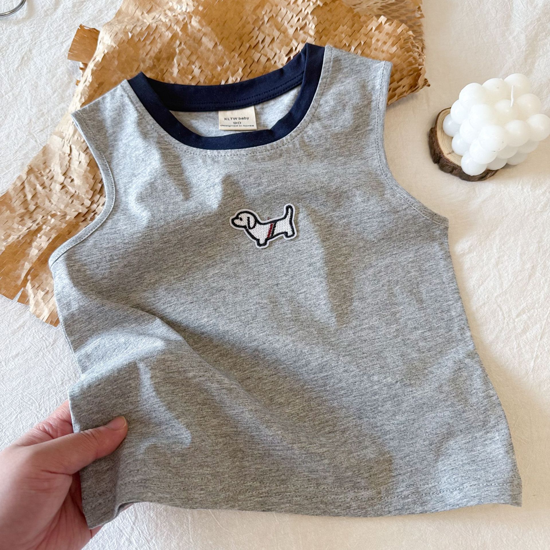 2025 여름 새로운 어린이 조끼 남자 민소매 티셔츠 통기성 유행 아기의 I 자형 조끼 여성용 얇은