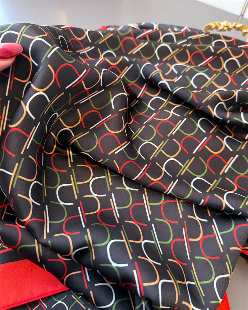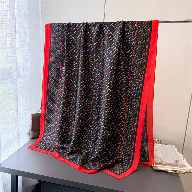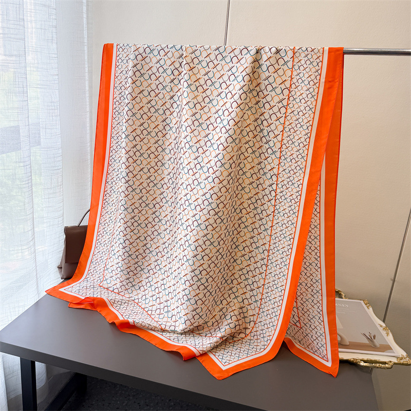 봄과 여름 기하학 시뮬레이션 실크 브로케이드 패션 자외선 차단 매력 패션 실크 스카프 긴 스카프 다용도 터번 스카프