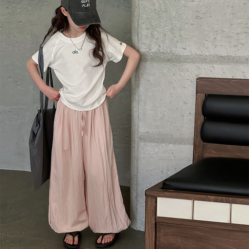 여름 중다 소녀 얇은 캐주얼 바지 새로운 아동복 어린이 소녀 느슨한 부드러운 얇은 블루머 느슨한 모기 방지 바지