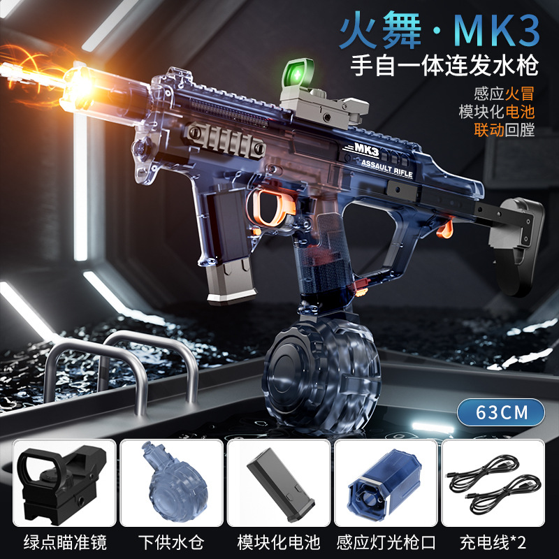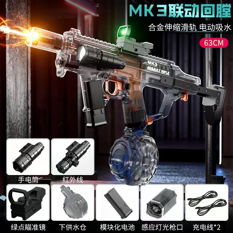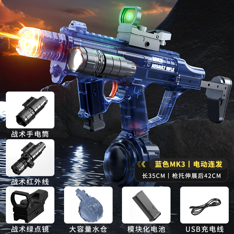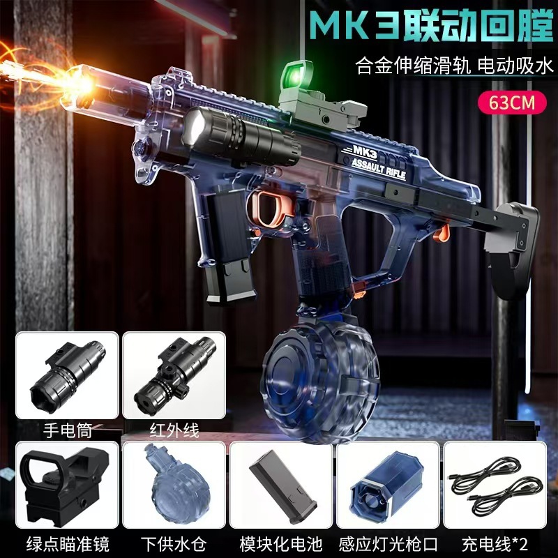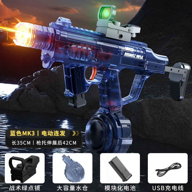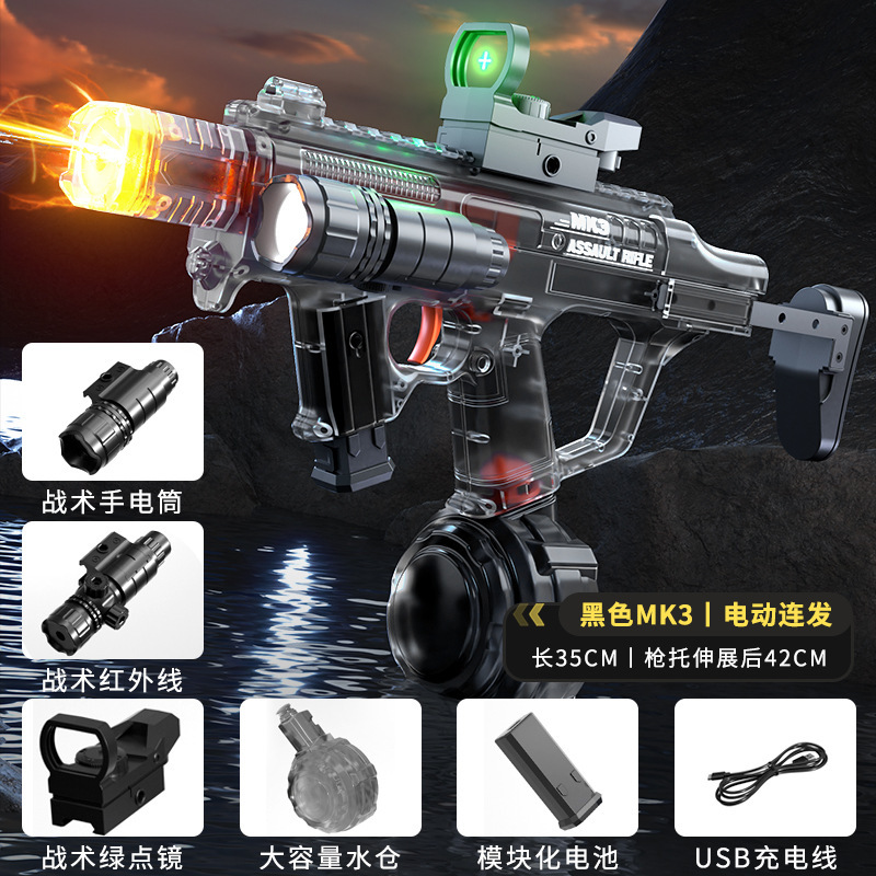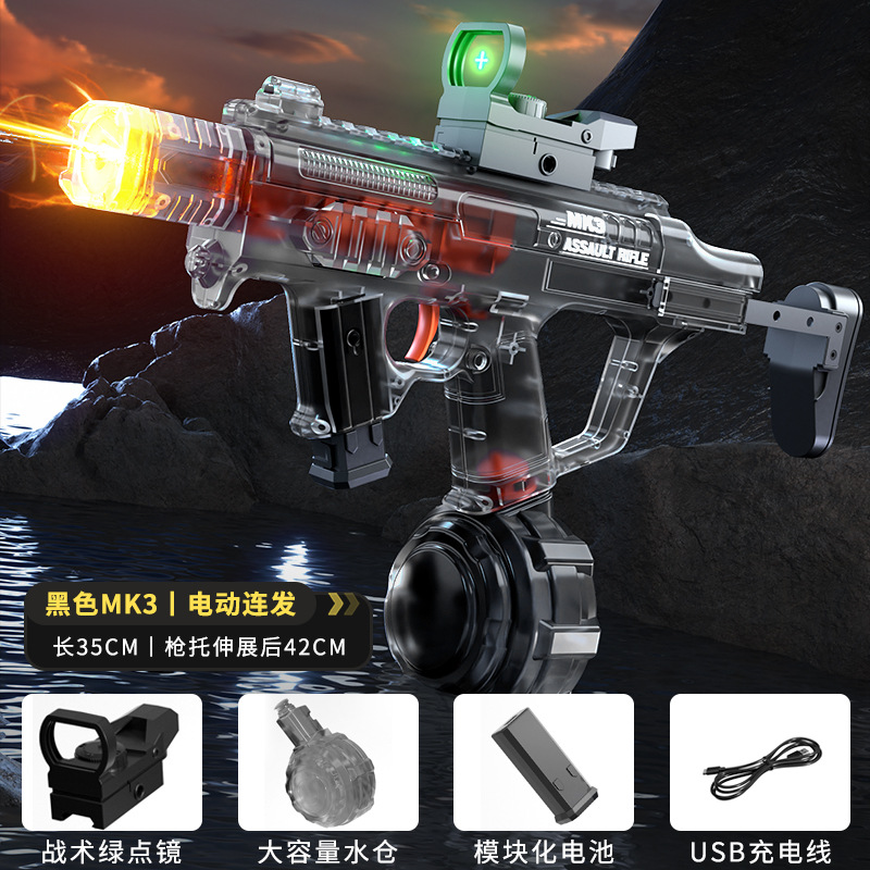 불 춤 MK3 물 총 전기 고압 슈퍼 대용량 자동 물 흡수 쿨 플래시 라이트 링크 펄스 버스트 워터 건