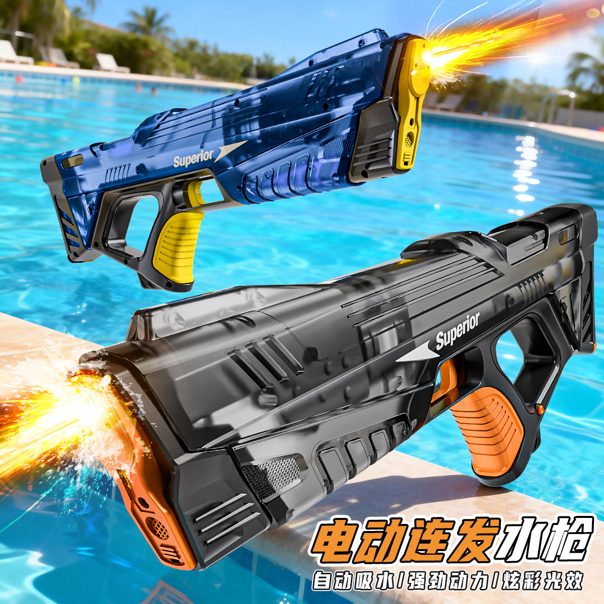 跨境新款脉冲水枪炫酷机械枪身七彩灯光强劲电动连发户外夏季水枪