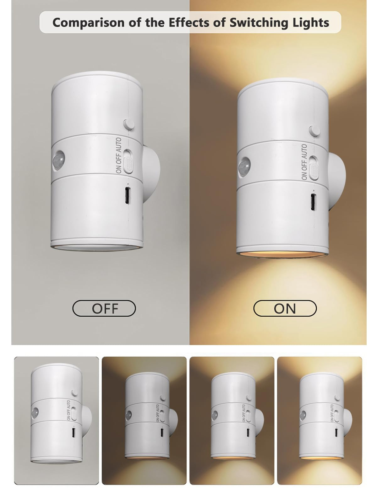 • 콘센트 감지 야간 조명 - 따뜻한 빛 - 흰색 (미국 규격)