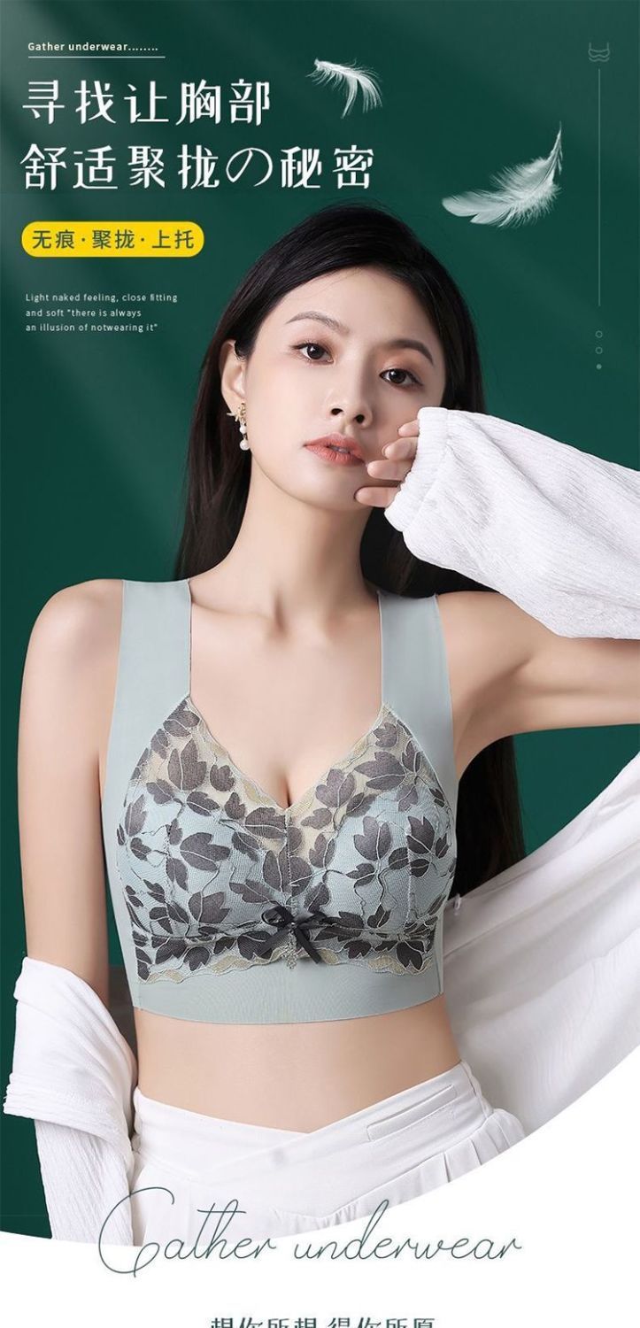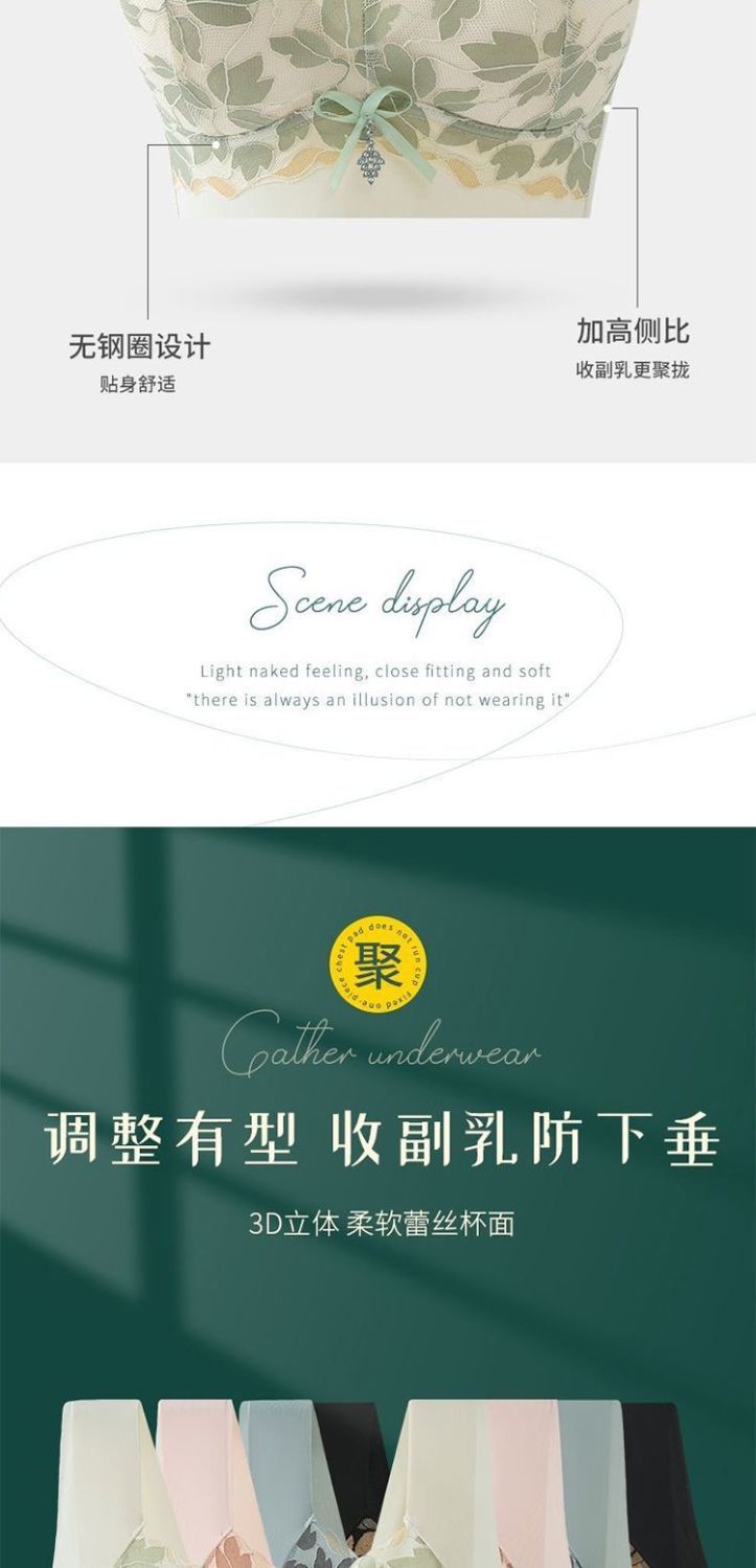 대형 가슴은 작은 반지없는 속옷 푸시 업 안티 처짐 브래지어 스포츠 플러스 사이즈 아름다운 뒷면 트레이스 레이스 속옷을 보여줍니다.스토어 가기
