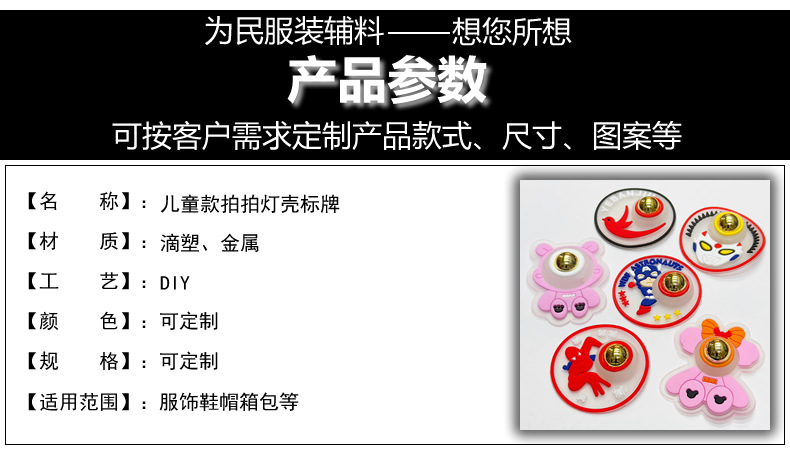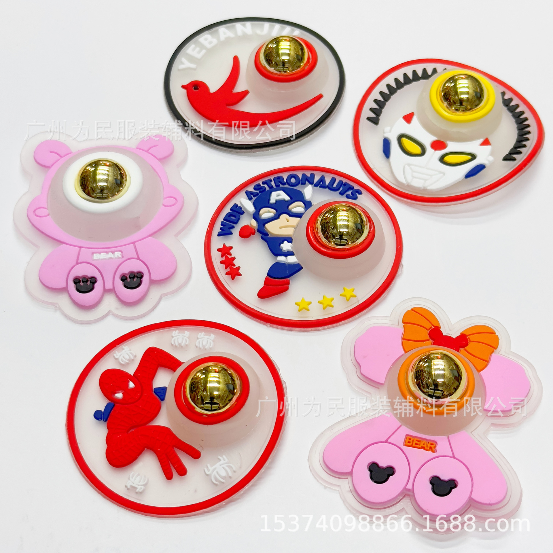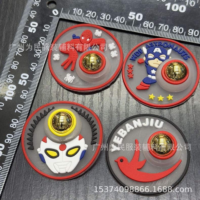 공장 직접 판매 섬유 액세서리 멋지고 귀여운 스파이더 맨 만화 플라스틱 고무 스탬프 점프 라이트 쉘 패션 로고
