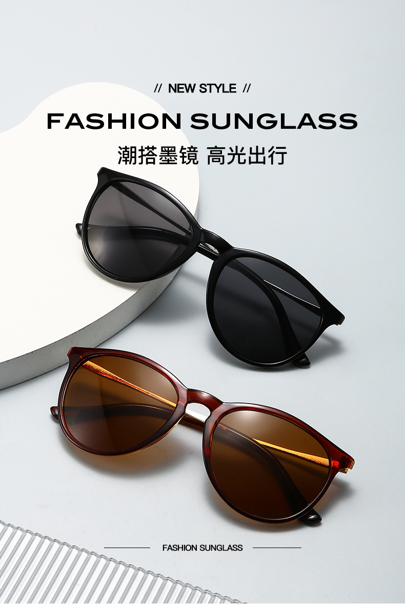 남성과 여성을 위한 새로운 세련된 둥근 대형 프레임 선글라스, 유럽과 미국의 인터넷 연예인 같은 스타일의 금속 두꺼비 거울, 복고풍 여성용 선글라스
