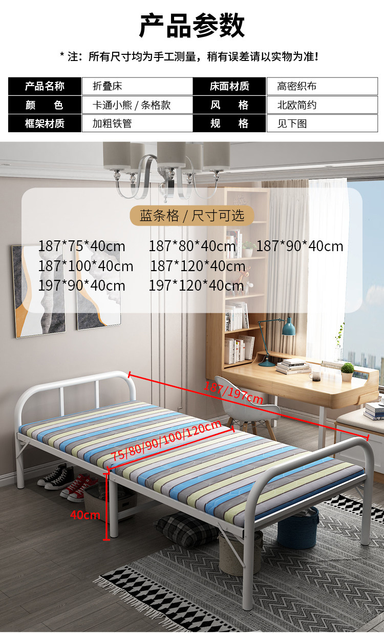 접이식 침대 점심 침대 가정용 나무 침대 임대 집 간이 침대 1.2m 가정용 성인 싱글 침대 경제적스토어 가기
