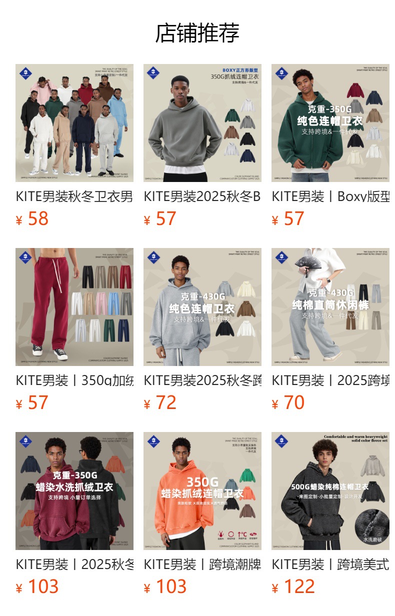 KITE 남성복丨가을 겨울 350g 도파민 컬러 플러스 벨벳 오버사이즈 루즈 트렌디 남성 스웨트 셔츠 및 바지 정장스토어 가기