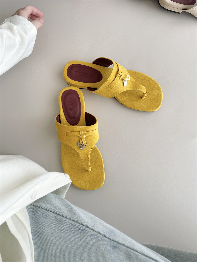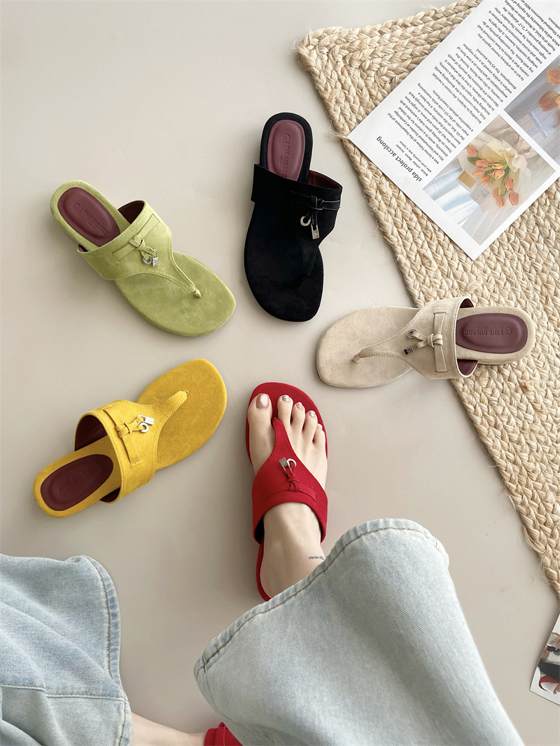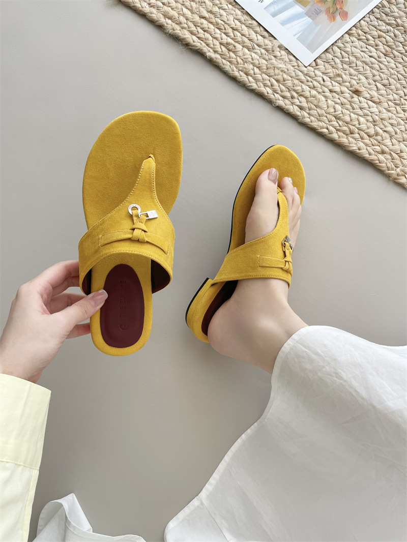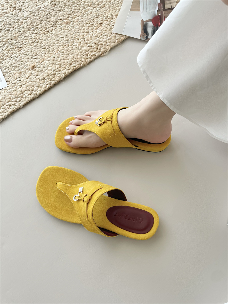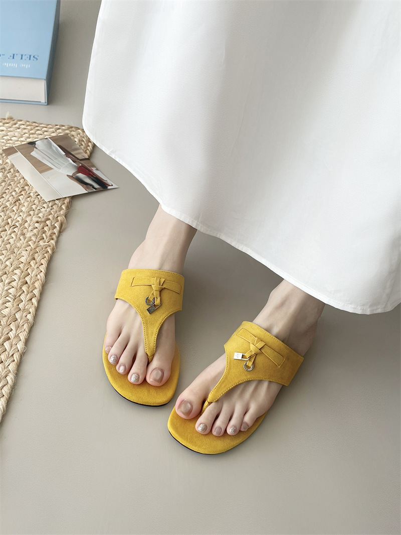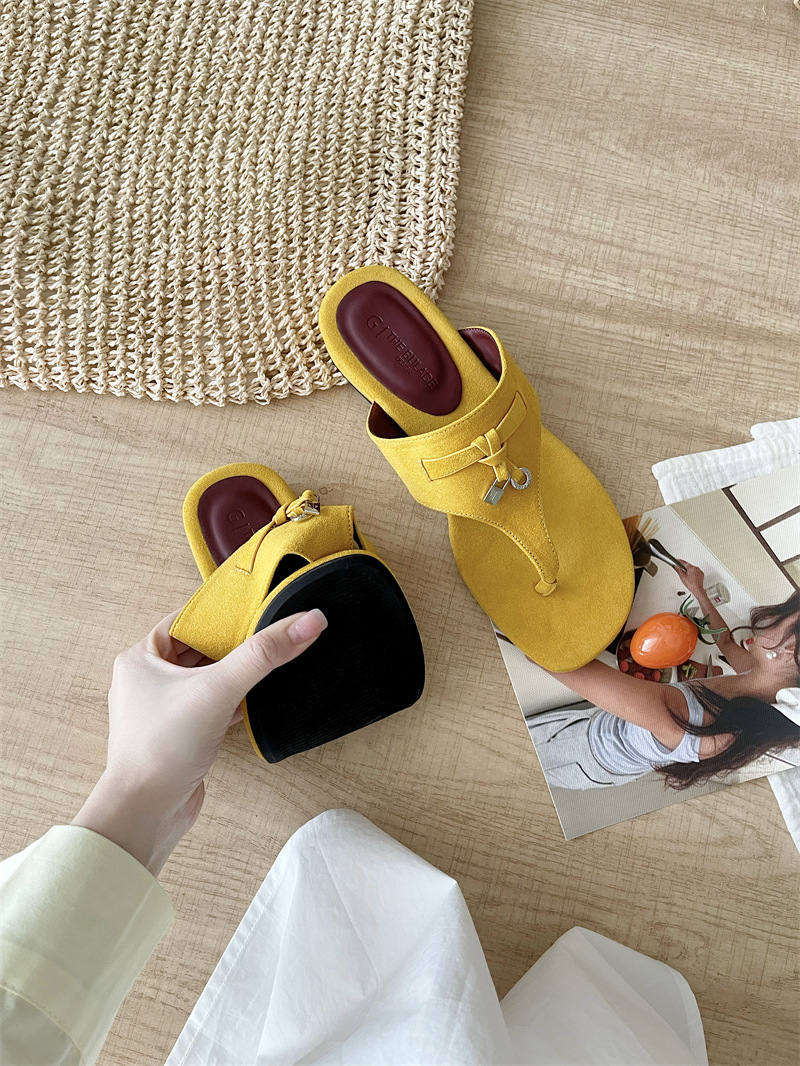 2025 봄과 가을 새로운 패션 프랑스 스타일 아름다운 노란색 플립 플롭 여성 여름 겉옷 패션 요정스토어 가기