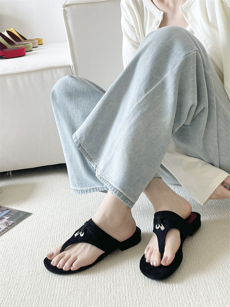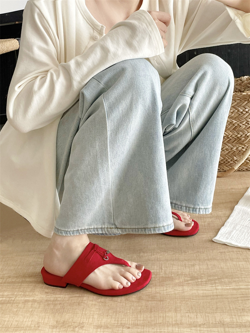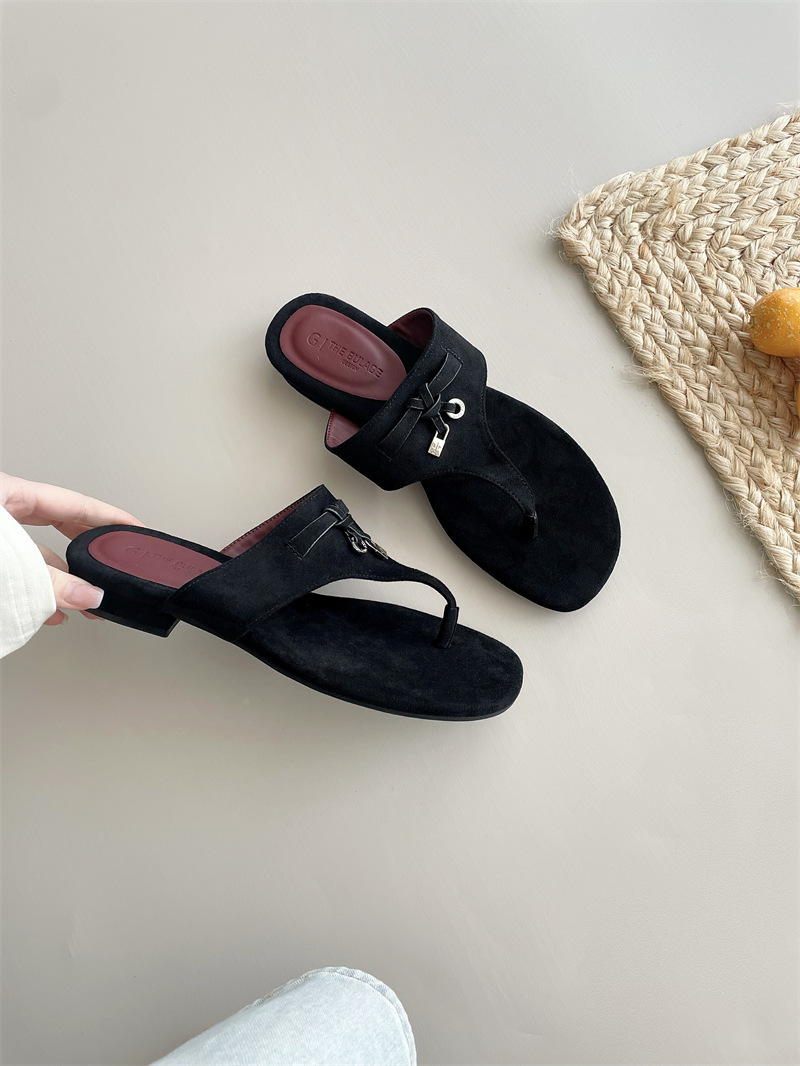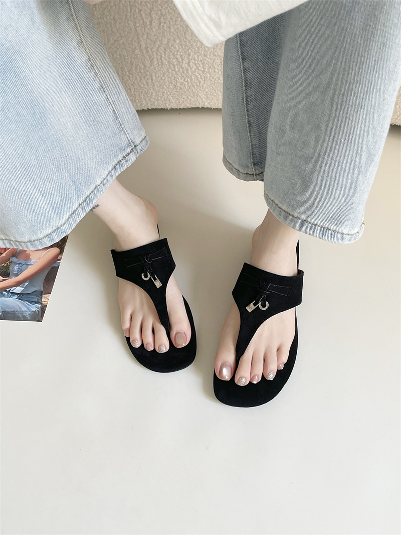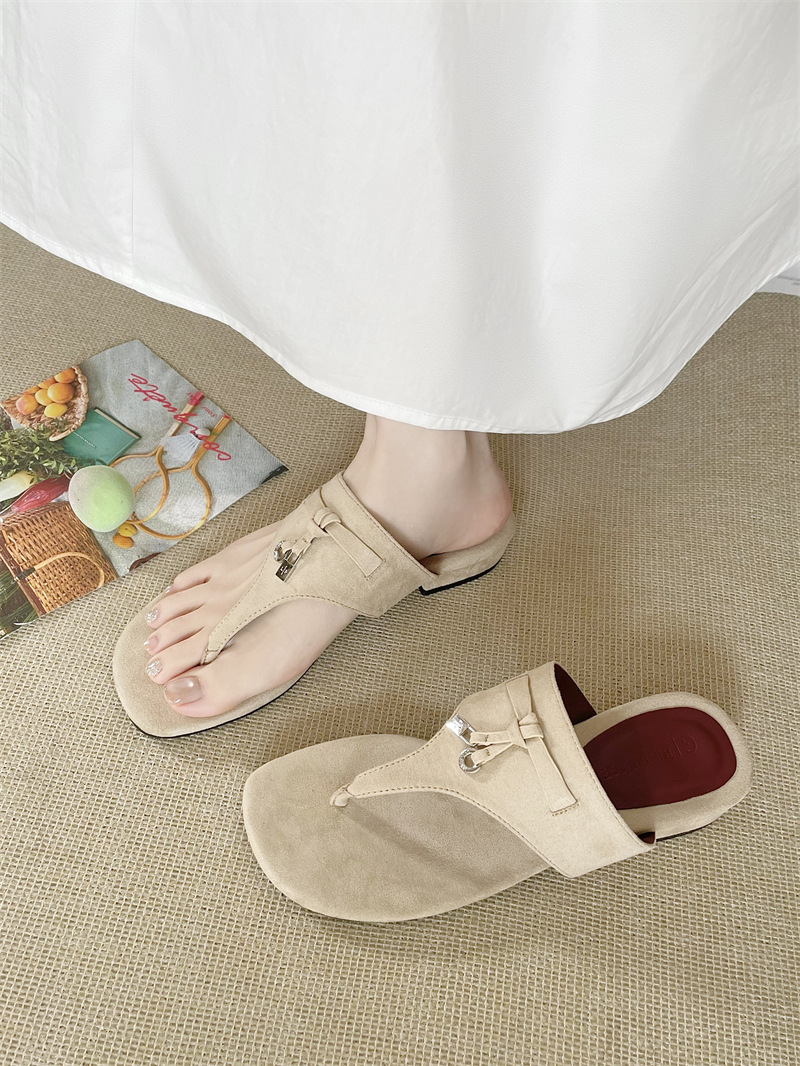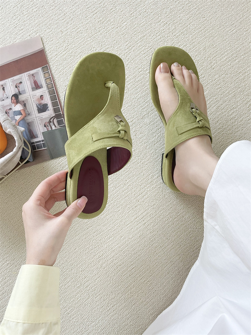 2025 봄과 가을 새로운 패션 프랑스 스타일 아름다운 노란색 플립 플롭 여성 여름 겉옷 패션 요정스토어 가기