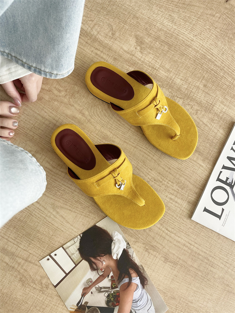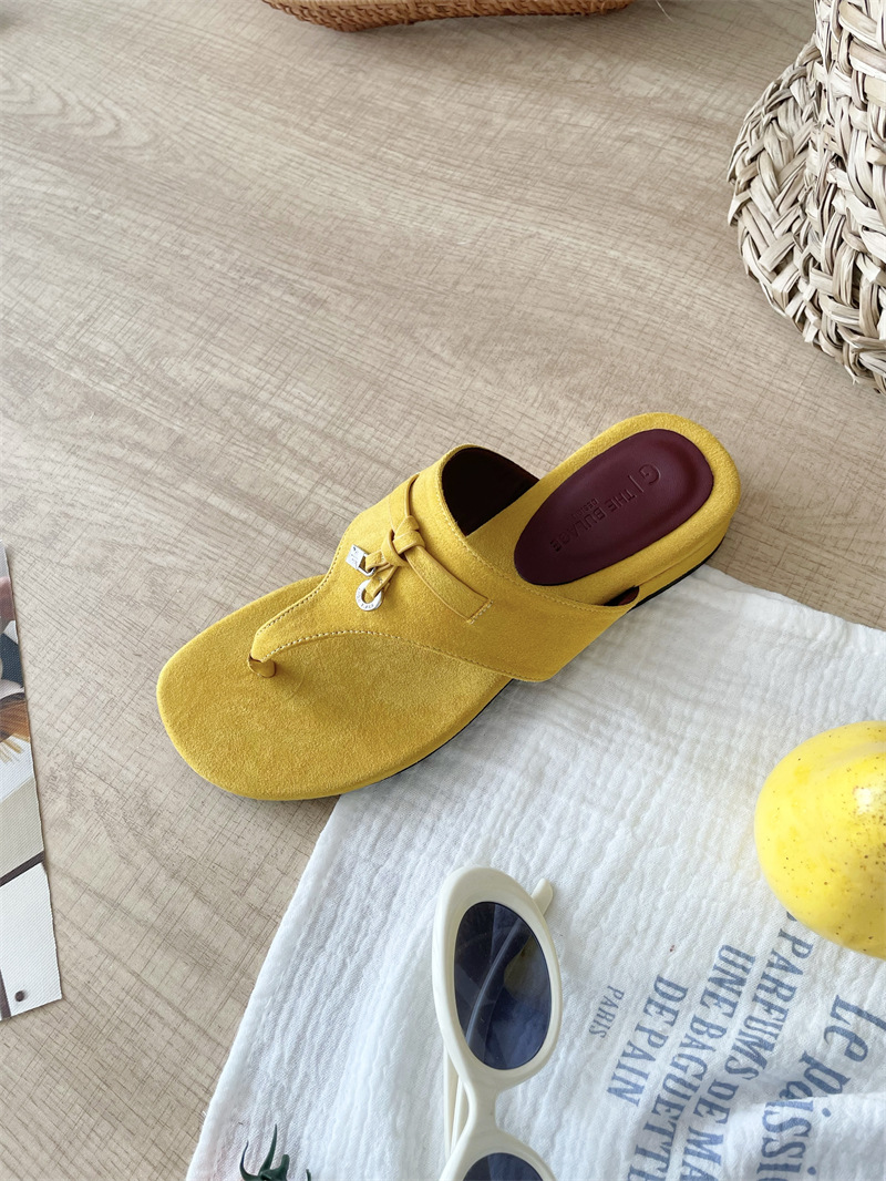 2025 봄과 가을 새로운 패션 프랑스 스타일 아름다운 노란색 플립 플롭 여성 여름 겉옷 패션 요정