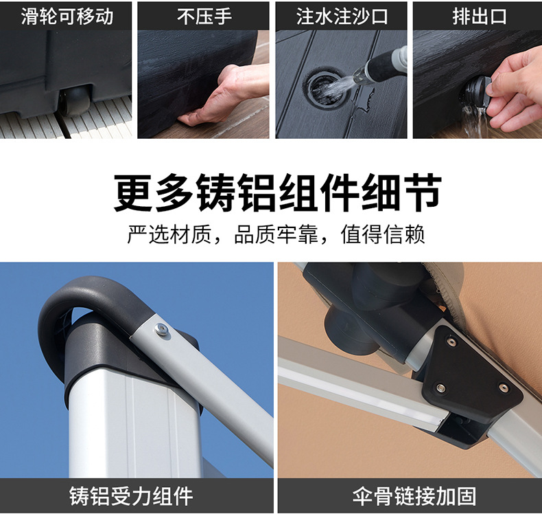 • 네비게이터 솔라 라이트 스트립 우산 100mm 기둥(앰버 골드) 3.0m 정사각형 - 200kg 물 및 모래 채우기 베이스