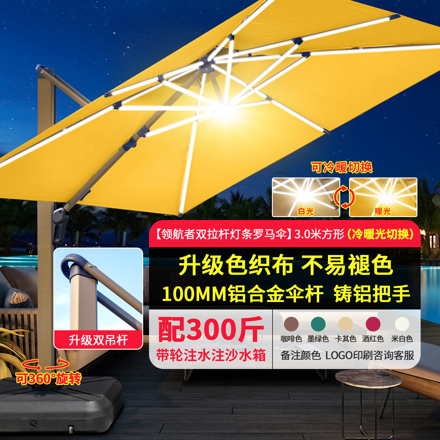 • 네비게이터 솔라 라이트 스트립 우산 120mm 기둥 (Haoyue White) 3.0m 평방 - 200kg 물 및 모래 채우기 베이스
