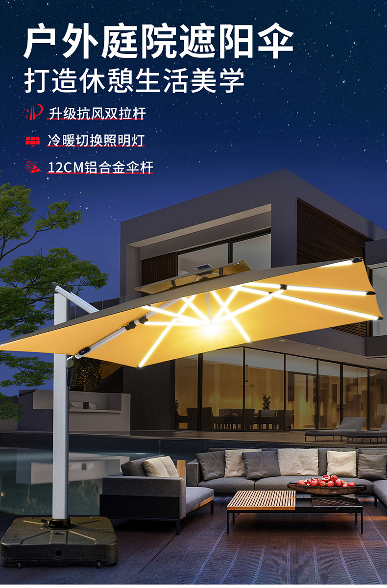 야외 우산 코트야드 우산 조명 태양 광 조명 야외 빌라 테라스 가든 햇빛 비 대피소 우산