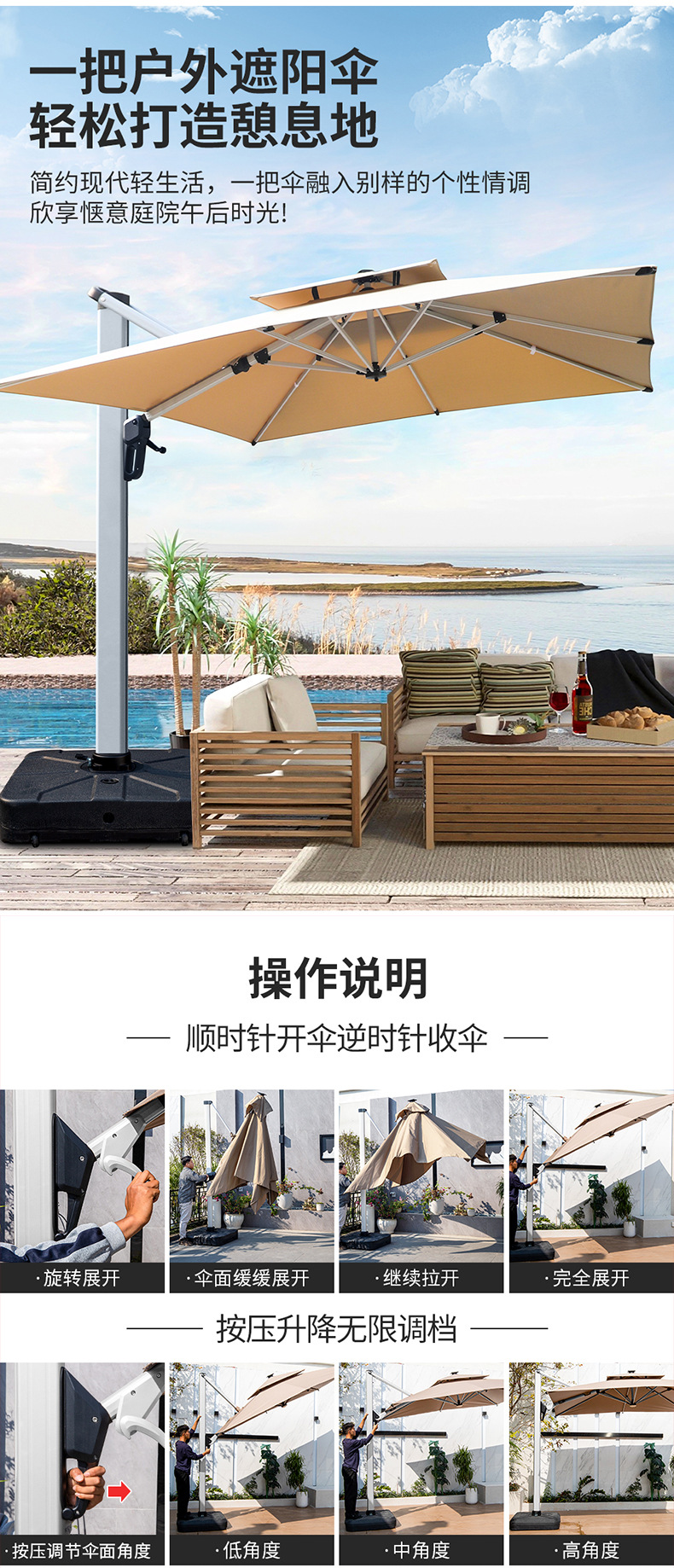 야외 우산 코트야드 우산 조명 태양 광 조명 야외 빌라 테라스 가든 햇빛 비 대피소 우산스토어 가기