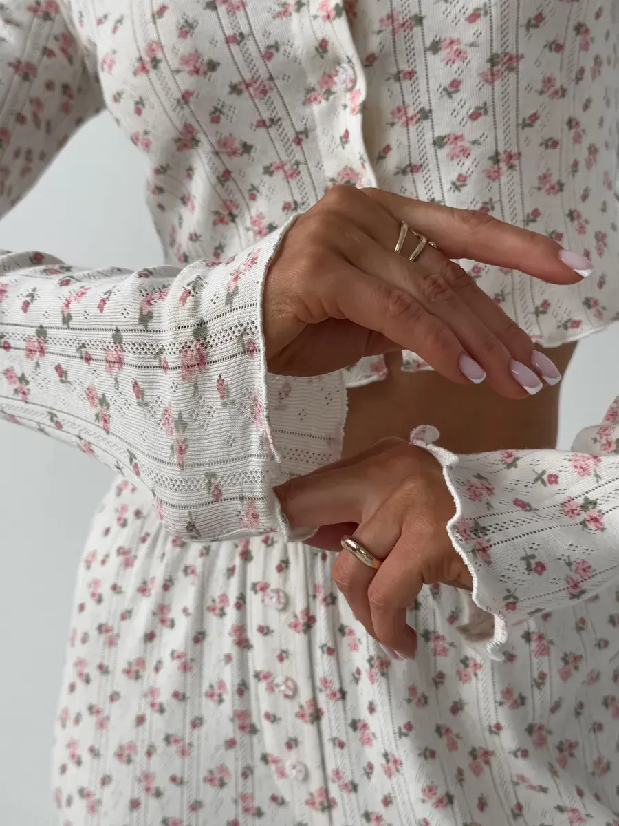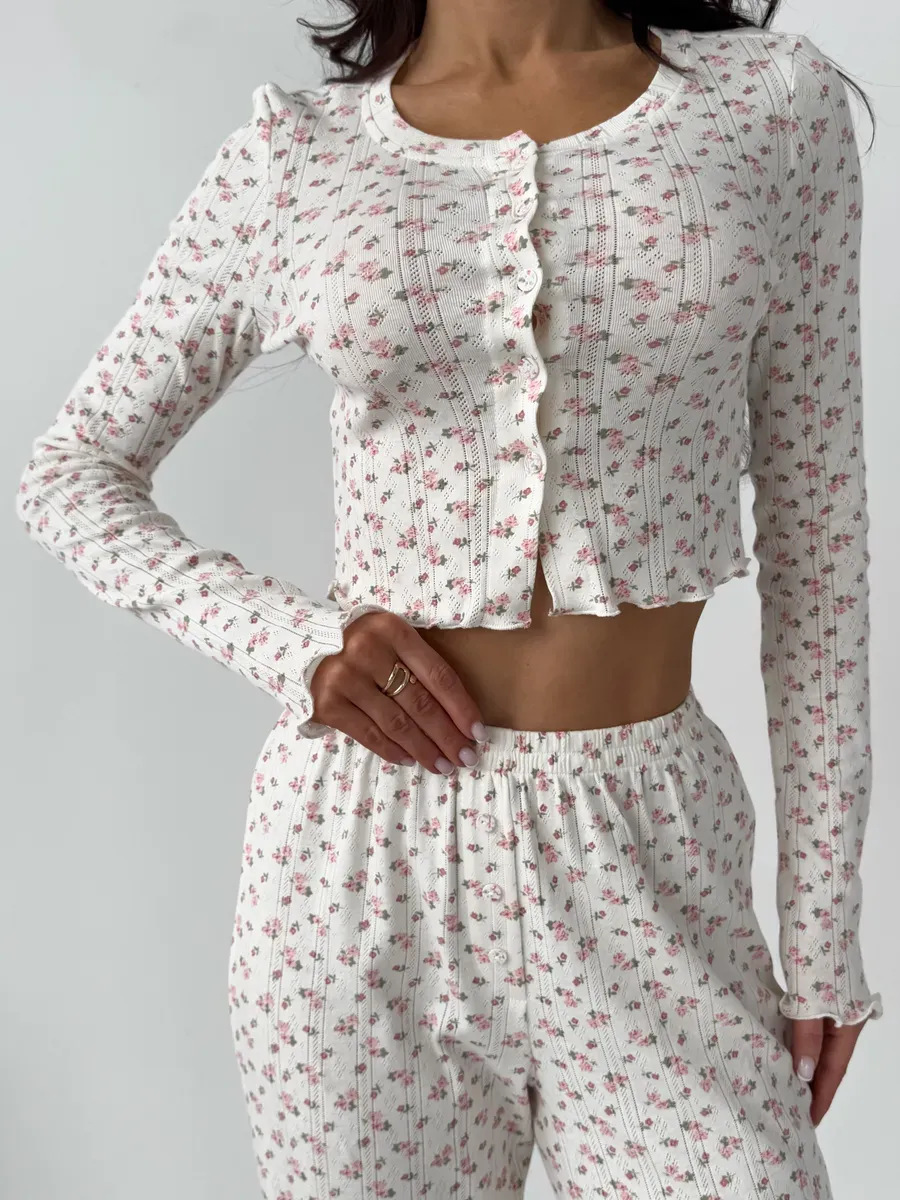 국경 간 대외 무역 봄과 가을 새로운 유럽과 미국의 긴 소매 바지 여성 카디건 캐주얼 인쇄 패션 홈 의류 세트스토어 가기