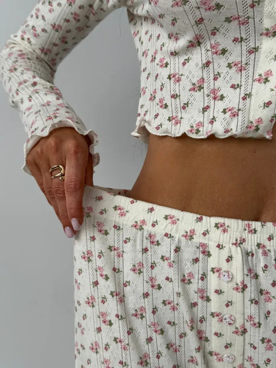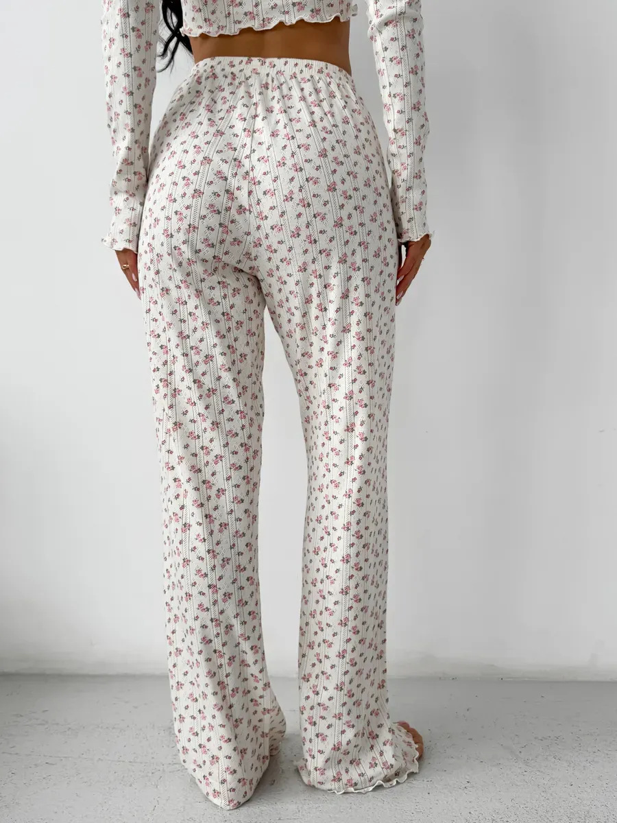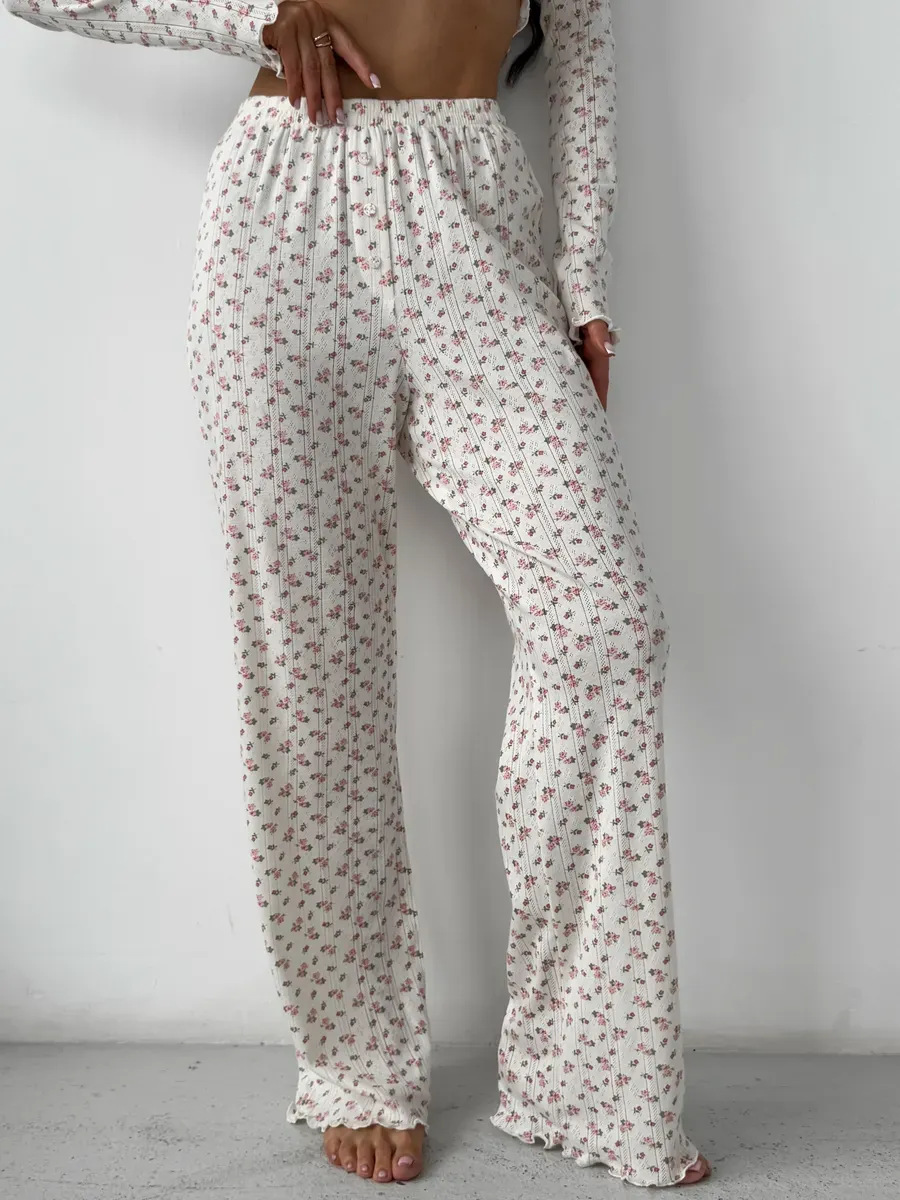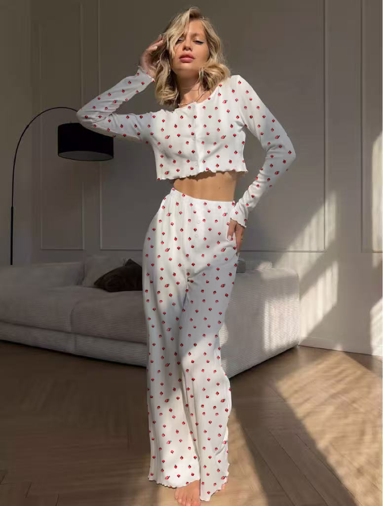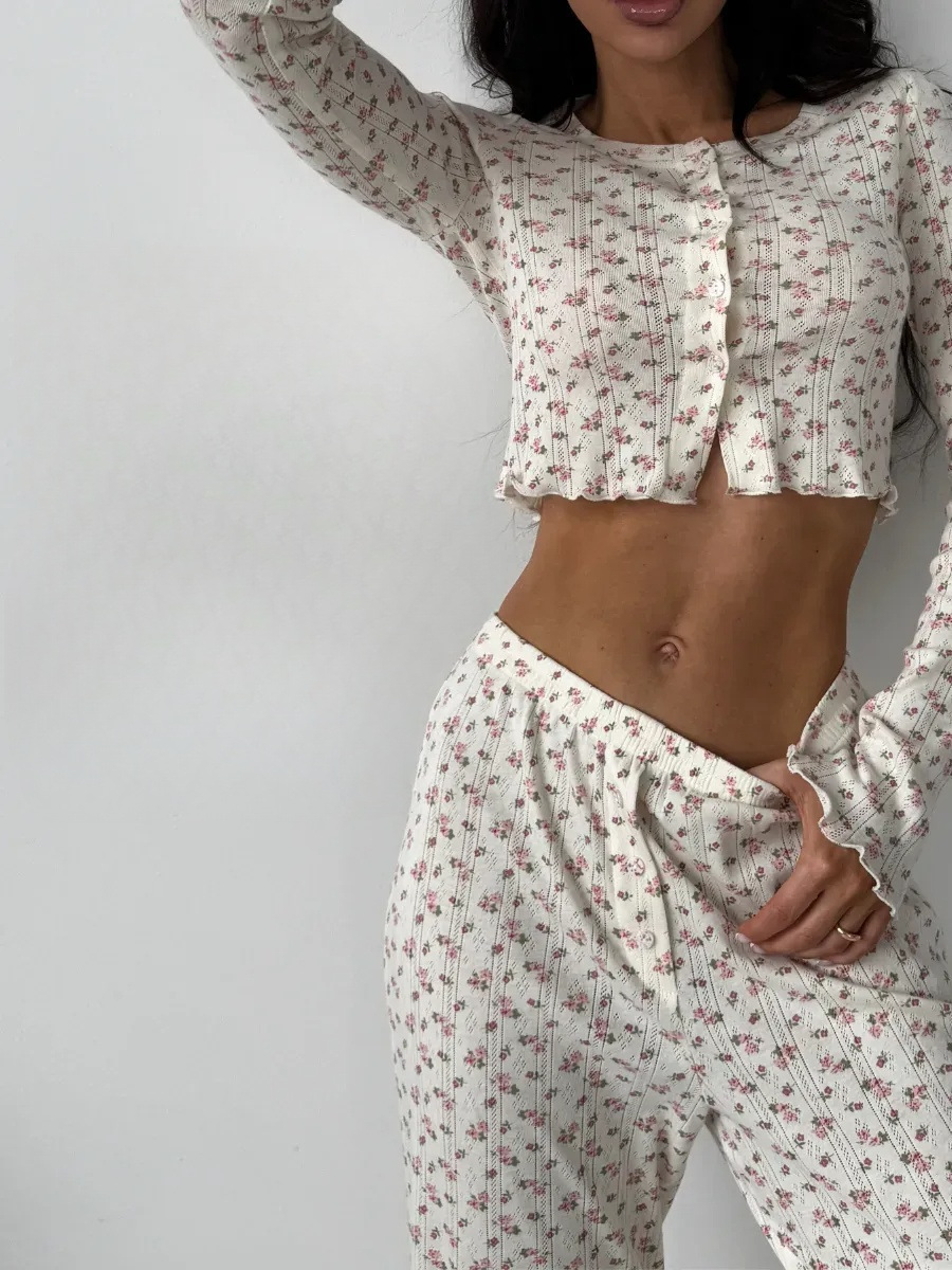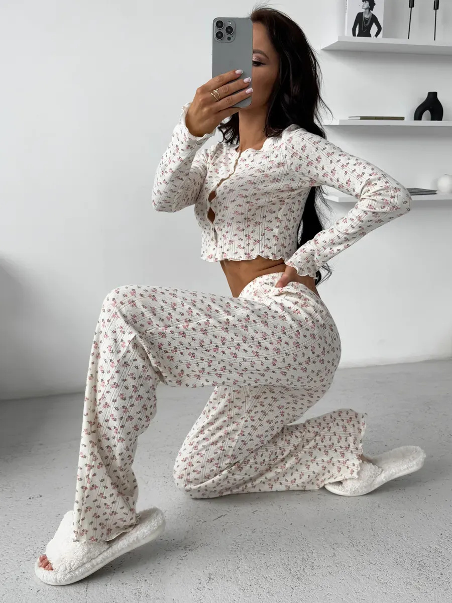 국경 간 대외 무역 봄과 가을 새로운 유럽과 미국의 긴 소매 바지 여성 카디건 캐주얼 인쇄 패션 홈 의류 세트