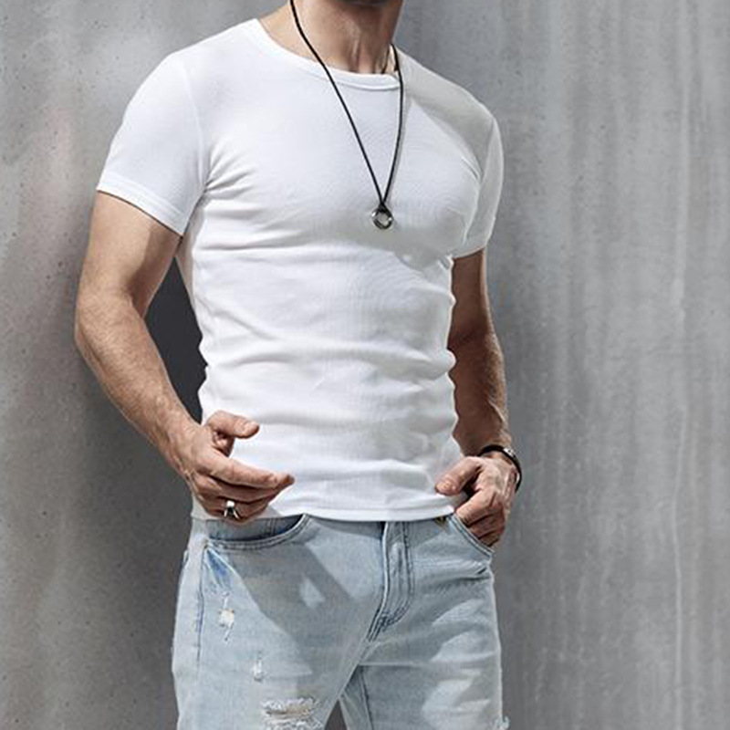 여름 신작 남성 스포츠 및 레저 러닝 운동 피트니스 속건성 탄성 슬림 솔리드 컬러 심플 반팔 티셔츠스토어 가기