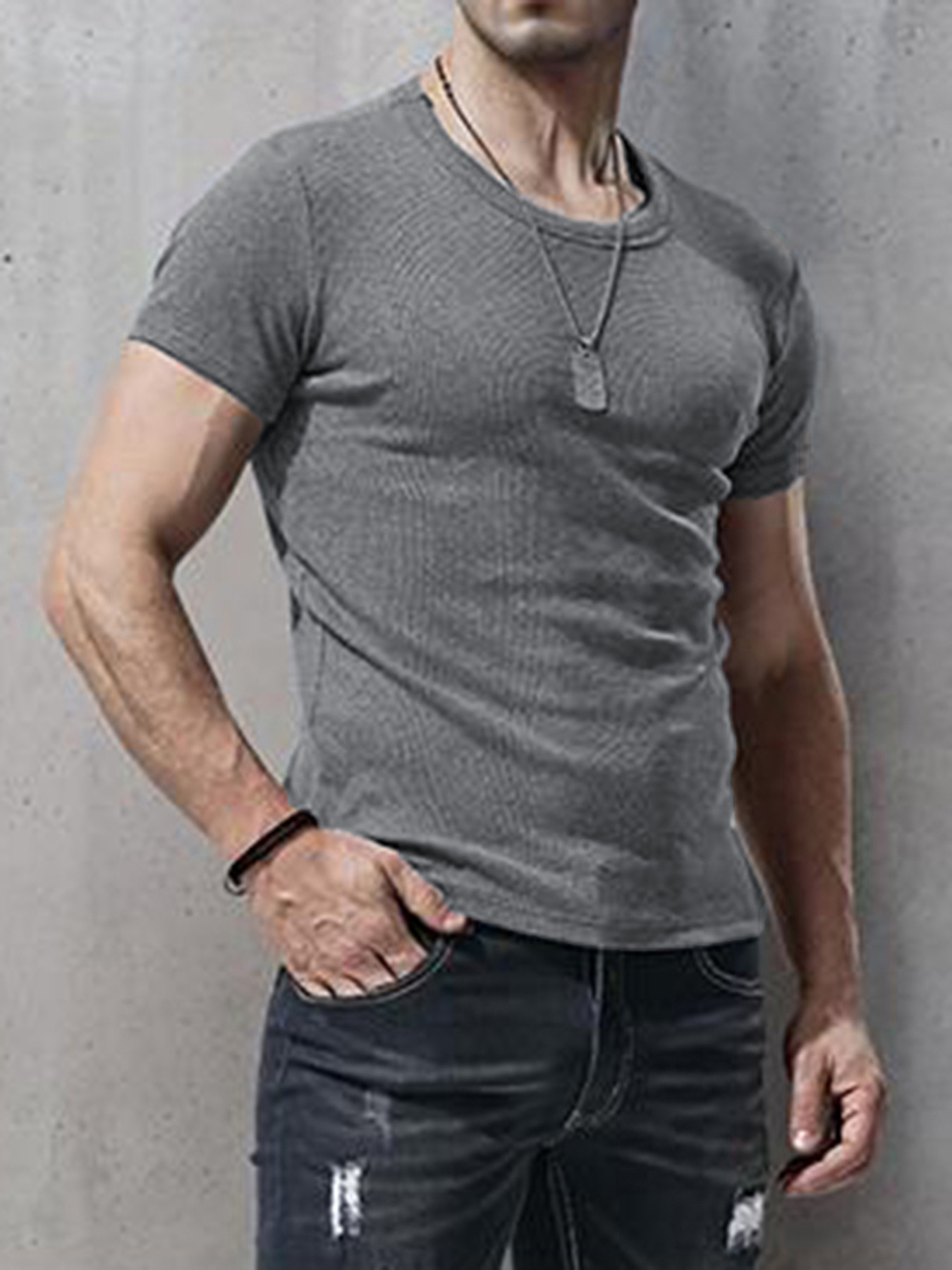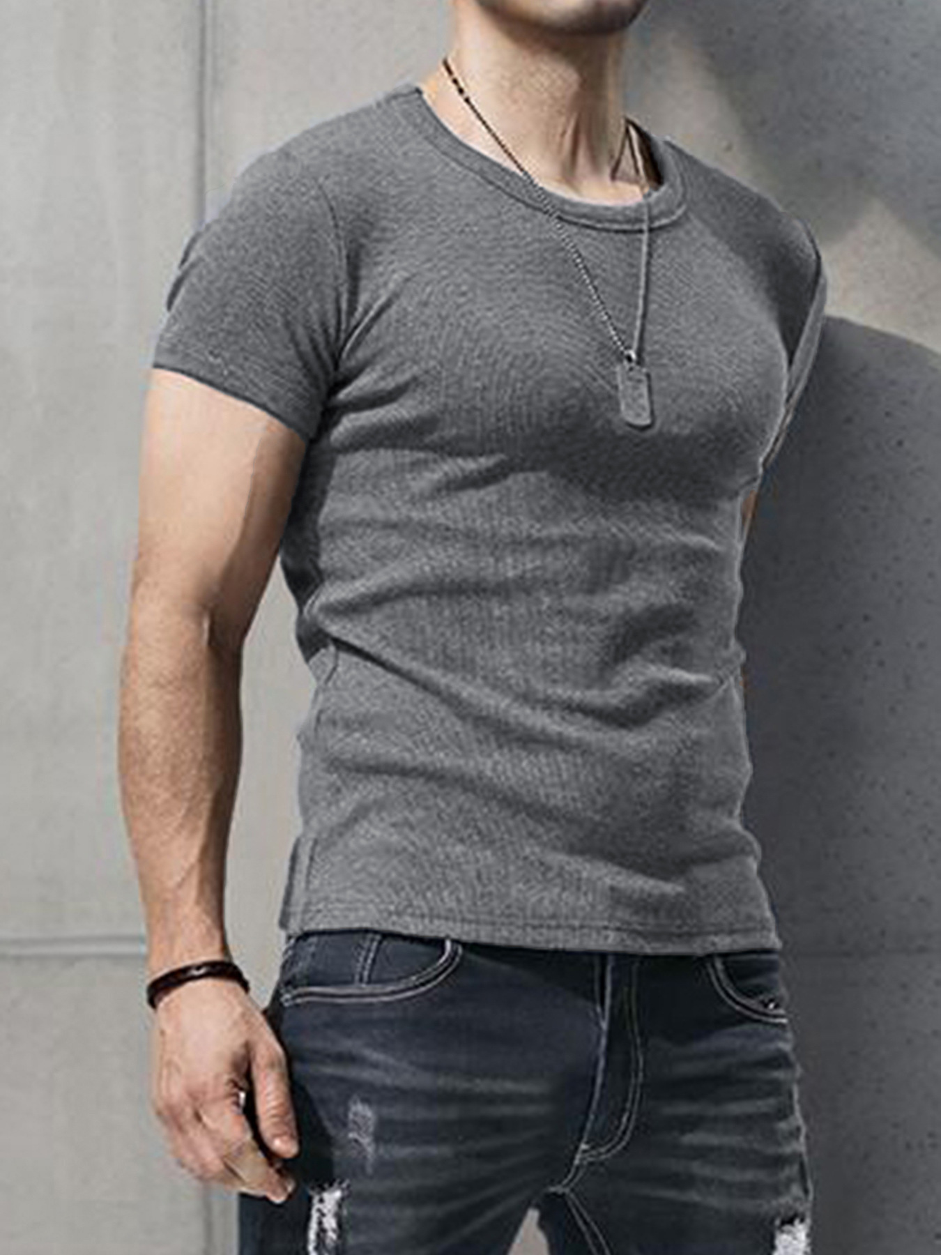 여름 신작 남성 스포츠 및 레저 러닝 운동 피트니스 속건성 탄성 슬림 솔리드 컬러 심플 반팔 티셔츠